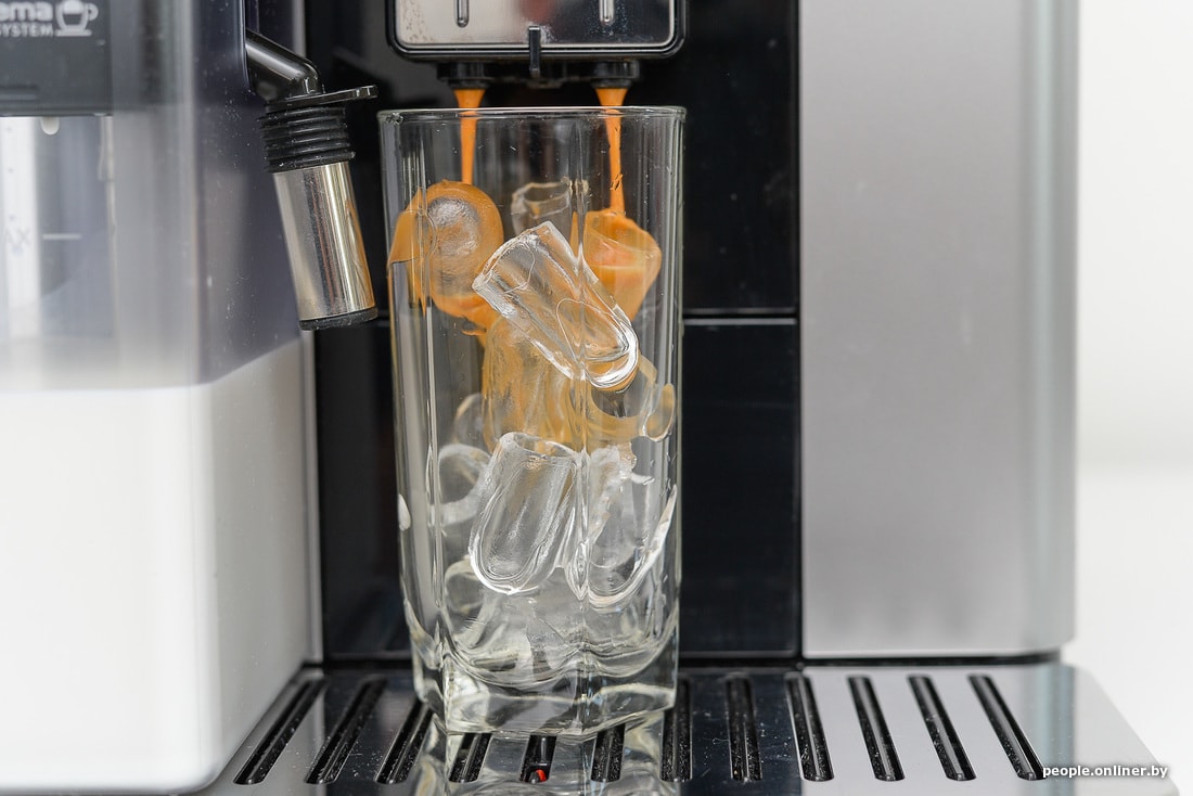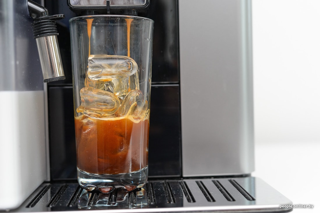 Добавляем несколько кубиков льда. В итоге, пожалуй, это оказался самый яркий напиток из всех, что мы готовили в рамках этого эксперимента. Да, кофемашина стоит немало, но в ней тоже есть много интересного. Как и с Delonghi, мы уже готовим материал-сравнение и этой модели.