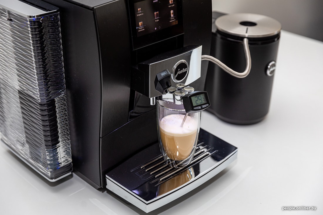Для приготовления капучино, кстати, мы использовали специальный охладитель молока (приобретается отдельно). Он нужен для того, чтобы молоко всегда оставалось свежим как можно дольше. Ну и само собой, также влияет на температуру холодного напитка на выходе.