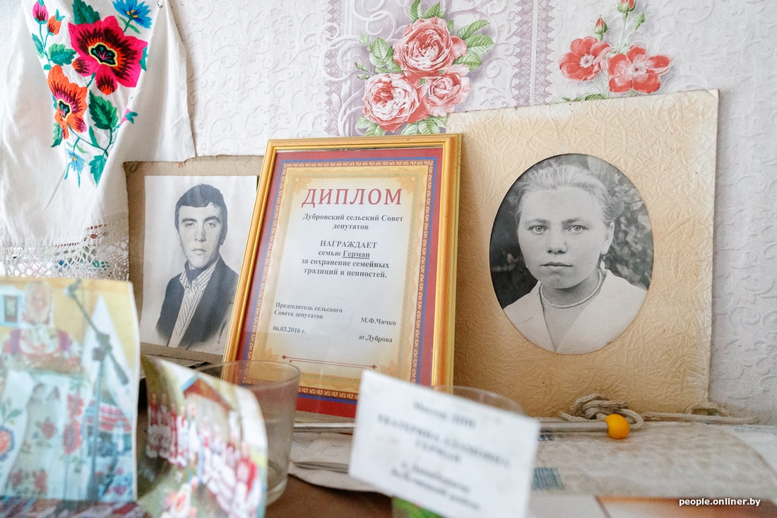 На самым поўдні Беларусі мы заехалі ў вёску Данілевічы Лельчыцкага раёна. Мясціны там такія, што нават мабільная сувязь працуе з перабоямі, але некалькі дзясяткаў жыхароў яшчэ маецца. Вясёлую і гасцінную Кацярыну Адамаўну Герман 1949 г. н. мы дома не засталі — пайшла на балота па журавіны. Дапамагчы ў пошуках пагадзілася траюрадная сястра нашага інфарманта Марыя.