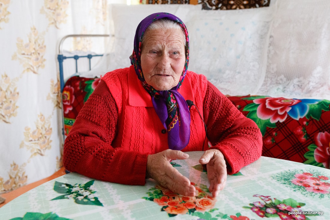Сустрэла нас там Таццяна Трафімаўна Сушчэня 1934 г. н. Сціплая інтэлігентная бабуля расказала і пра вайну, і пра гаспадарку, і пра сваіх шматлікіх братоў і сясцёр. Вялікая сям’я — падстава для гонару ў мірны час — у ваенныя часы вымагае павышанага клопату. Уразіў аповед нашага інфарманта пра зімовыя начоўкі ў лесе, як сядзелі дзецьмі, прытуліўшыся адзін да аднаго, пад накіданымі зверху бацькам яловымі лапкамі, бо распальваць вогнішча было нельга. Пасля слоў бабулі Тані «ой, трудно, трудно расказваць» тэму вайны гэтым разам мусілі закрыць.