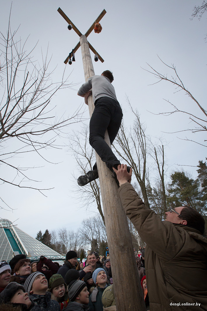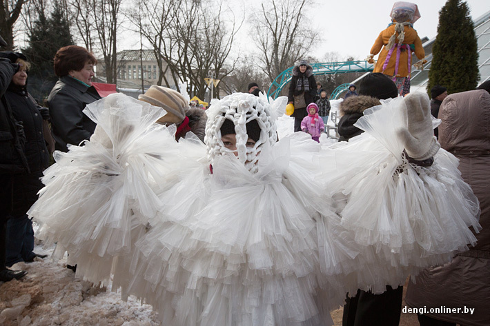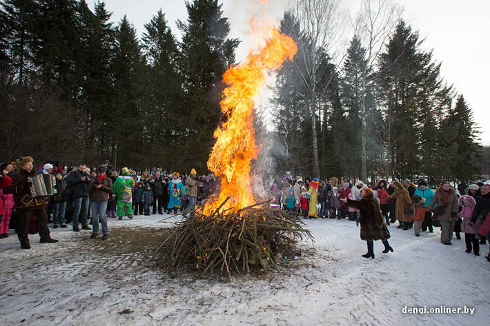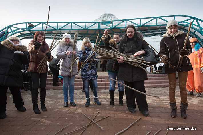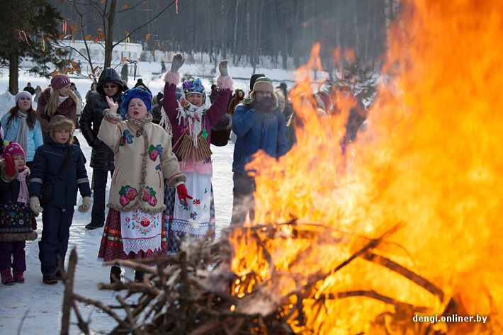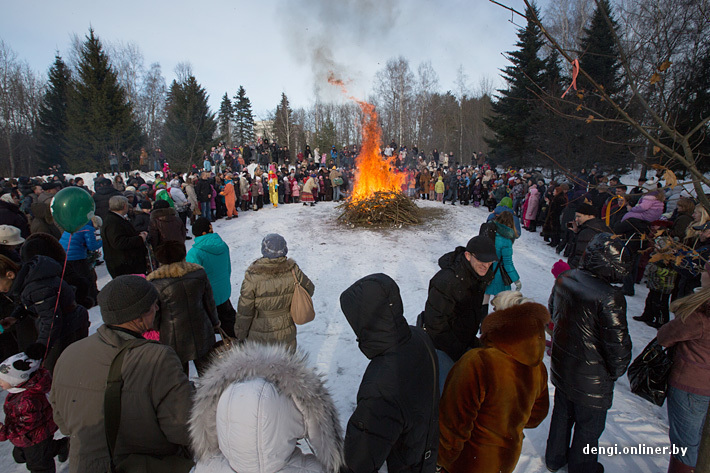 В Беларуси продолжаются гуляния, связанные с празднованием Масленицы. Свой вариант шоу-программы предложил сегодня минчанам Центральный ботанический сад. Те, кто не пожалел 20 тыс. рублей на билет, увидели выступления скоморохов, акробатов, музыкальных коллективов. Кульминацией стало сожжение на костре старых ненужных вещей и традиционного символического чучела зимы. В костер люди активно бросали также белорусские рубли. Представляем наш фотоотчет с мероприятия.