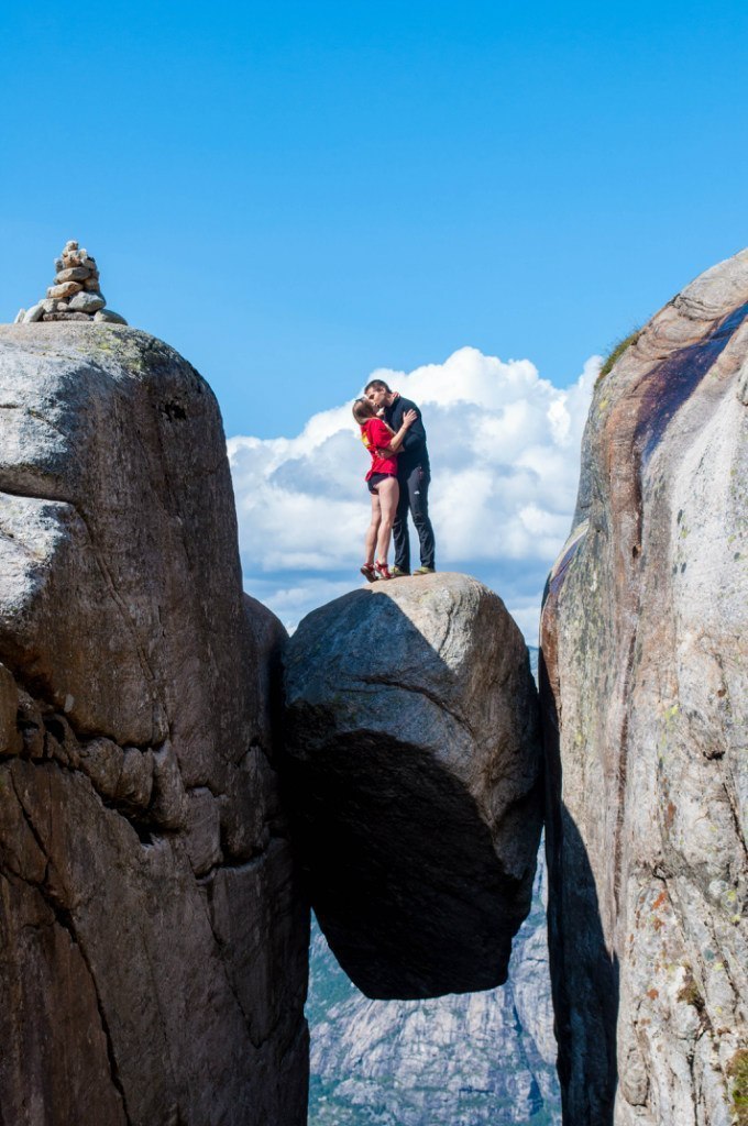 «Нас с самого начала объединяло желание двигаться, «кипятить» жизнь по полной программе, — пишет Алексей. — Нам кажется, что, когда мы вместе, мы переворачиваем мир вверх дном. В первый раз мы признались друг другу в любви, когда прыгали тандемом со 150-метровой скалы в Крыму. В мае совершили поход на высочайшую вершину Европы — гору Эльбрус. Именно там я сделал предложение».