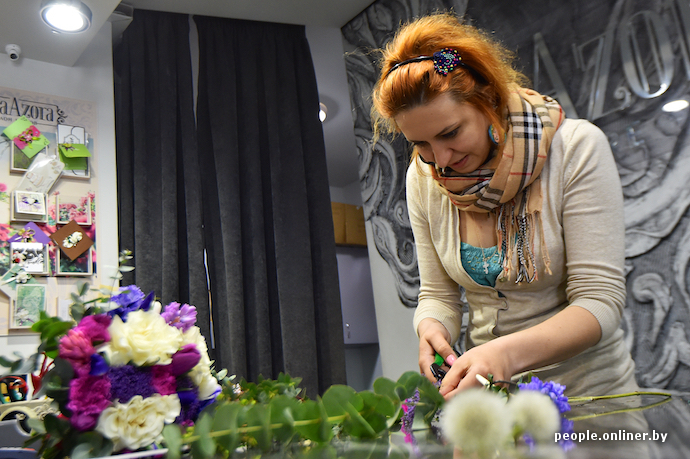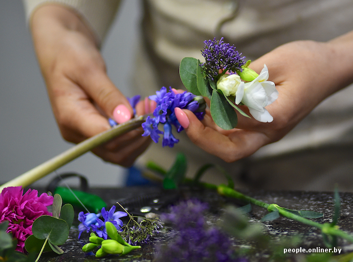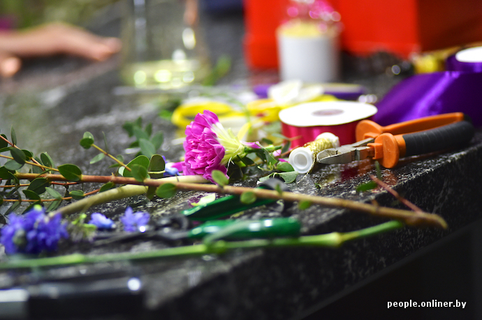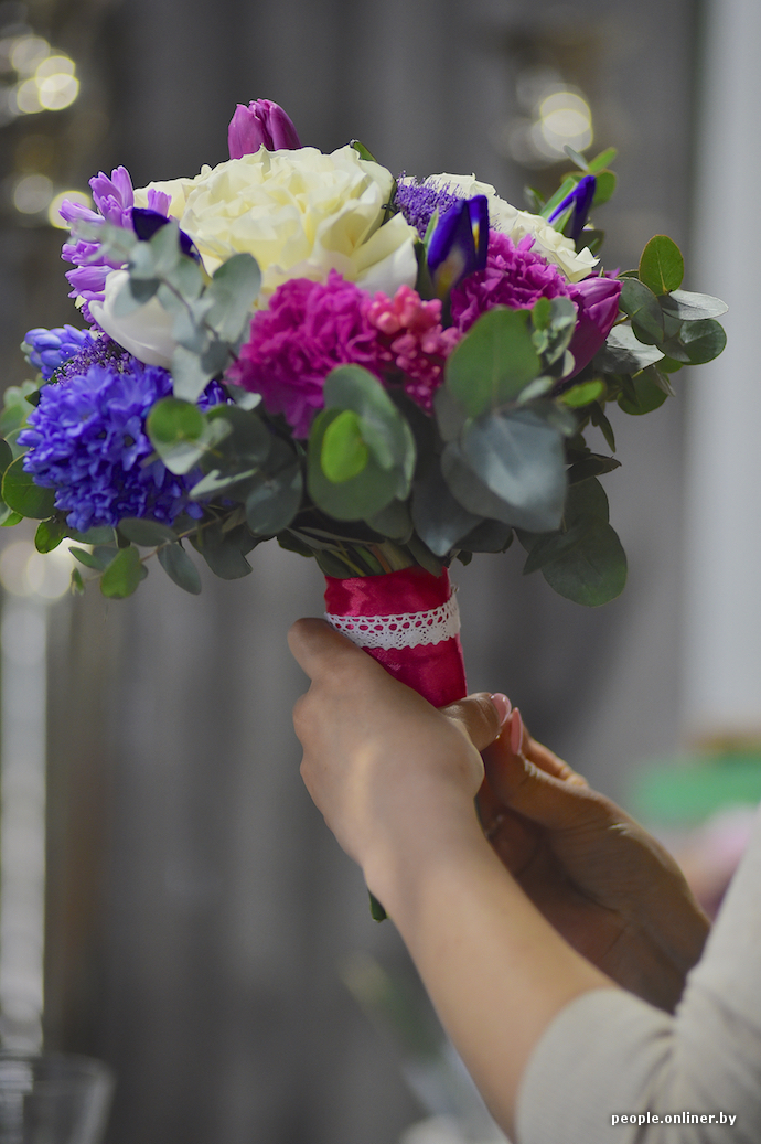 Пока Саше делают прическу, вместе с Надеждой из Творческого бюро имени Чарли Чаплина отправляемся в салон цветов, где ребятам готовят свадебный букет.