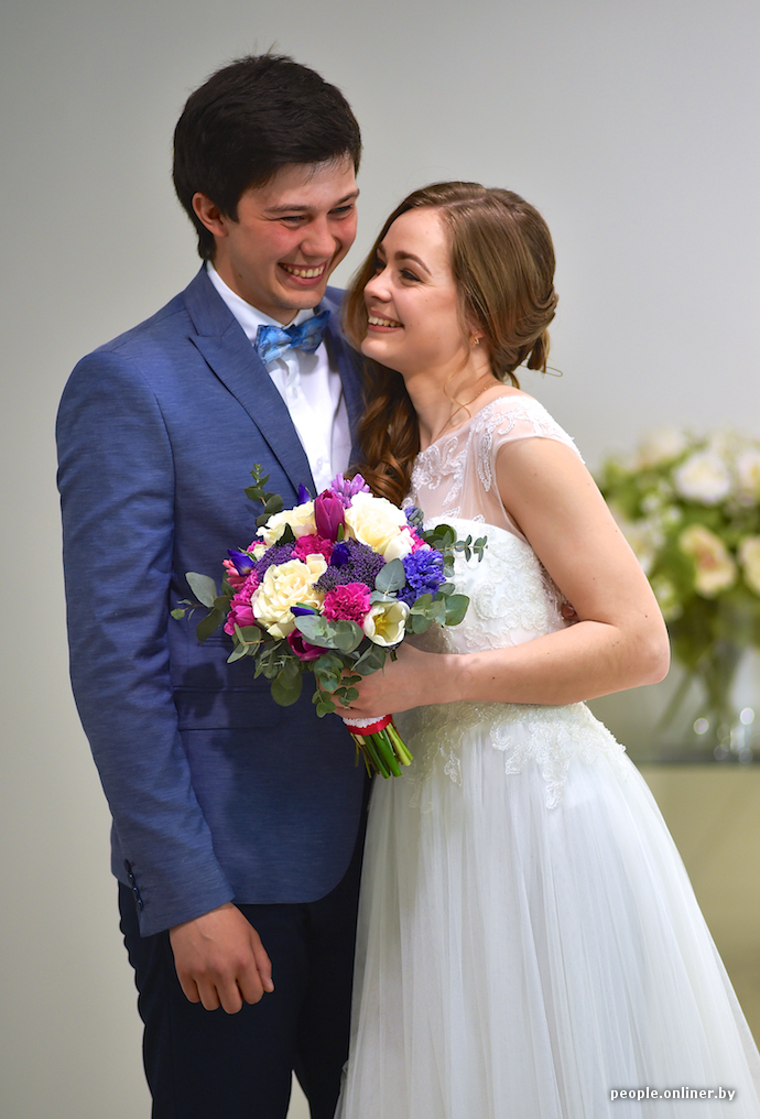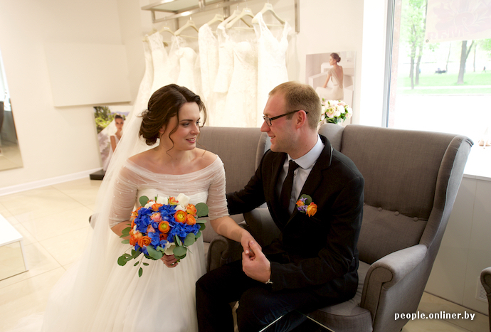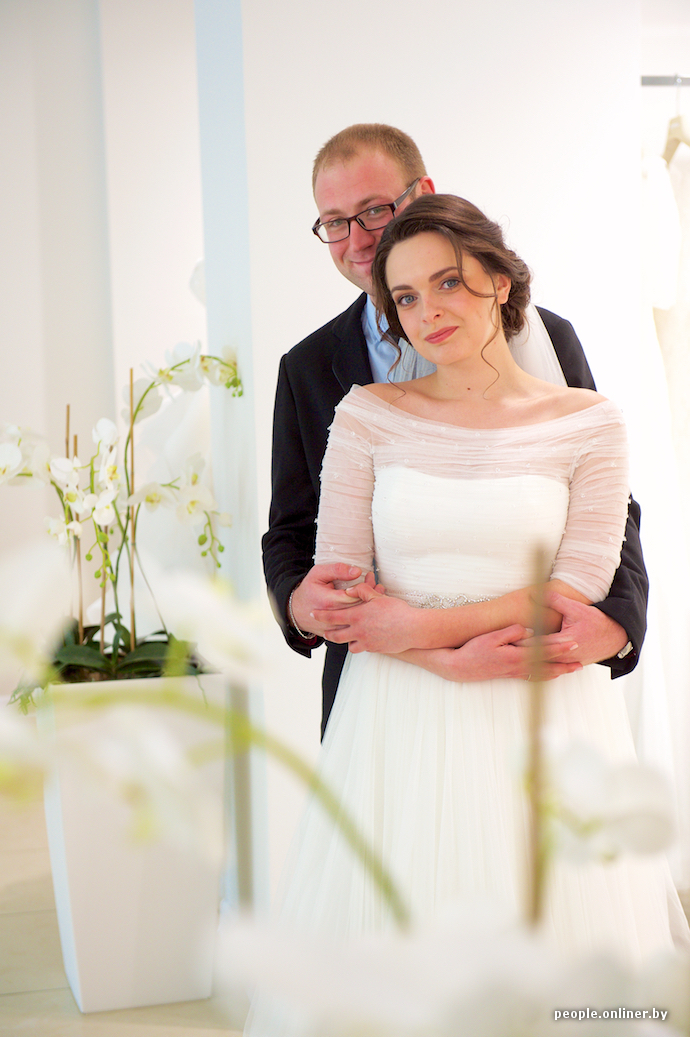 Подробно об истории этой пары и ее пути к финалу вы можете прочитать здесь и здесь. Напомним, что ребята познакомились на Нарочи. Работают они в Минске и свадьбу будут отмечать здесь же. Невесту «делали» в рабочий день, поэтому Маша отпросилась, а Дмитрий присоединился уже при выборе платья.