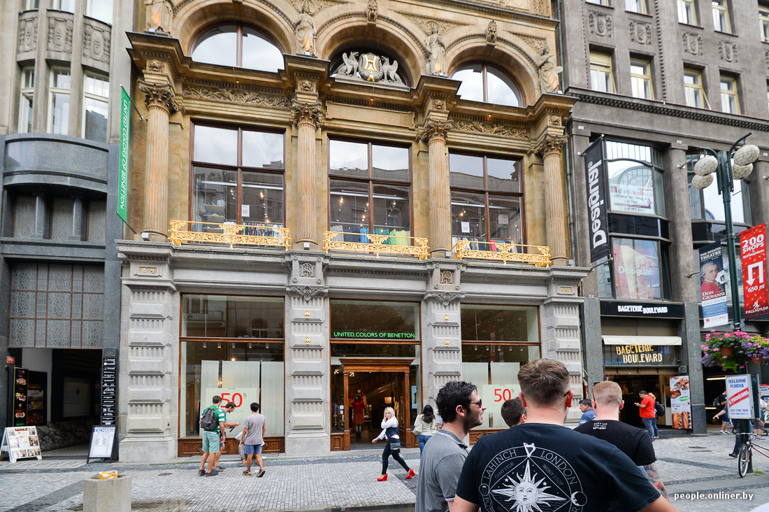 От Вацлавской площади до площади Республики тянется улица На Пршикопе — центр бюджетного шопинга. Здесь есть Zara, Mango, Benetton, Lacoste, H&M и все стандартные для любого европейского города марки.