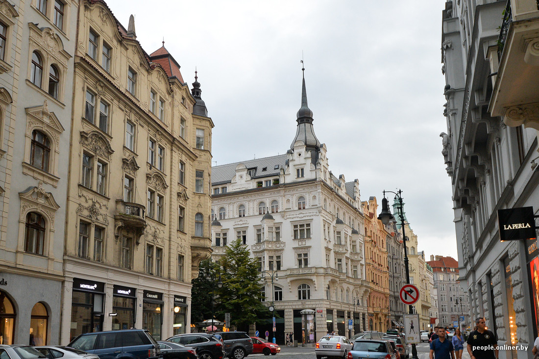 Итак, деньги в кармане. Если карман пухлый, то вам на улицу Парижскую — местную via Monte Napoleone, с элитными бутиками не для простых смертных, дамами в безукоризненных нарядах и кавалерами им под стать. Rolex, Brioni, Hermes, Dolce & Gabbana и прочие Louis Vuitton стреляют своими ценами между глаз — но это так везде и давно не трогает. Эта улица — не для обычных чехов с их средней зарплатой в $1200, не для туристов из бедных и гордых государств, а для русских, китайцев, арабов. Гулять здесь интересно, так как соцсоревнование на лучшую витрину побуждает бутики применять фантазию и мастерство.
