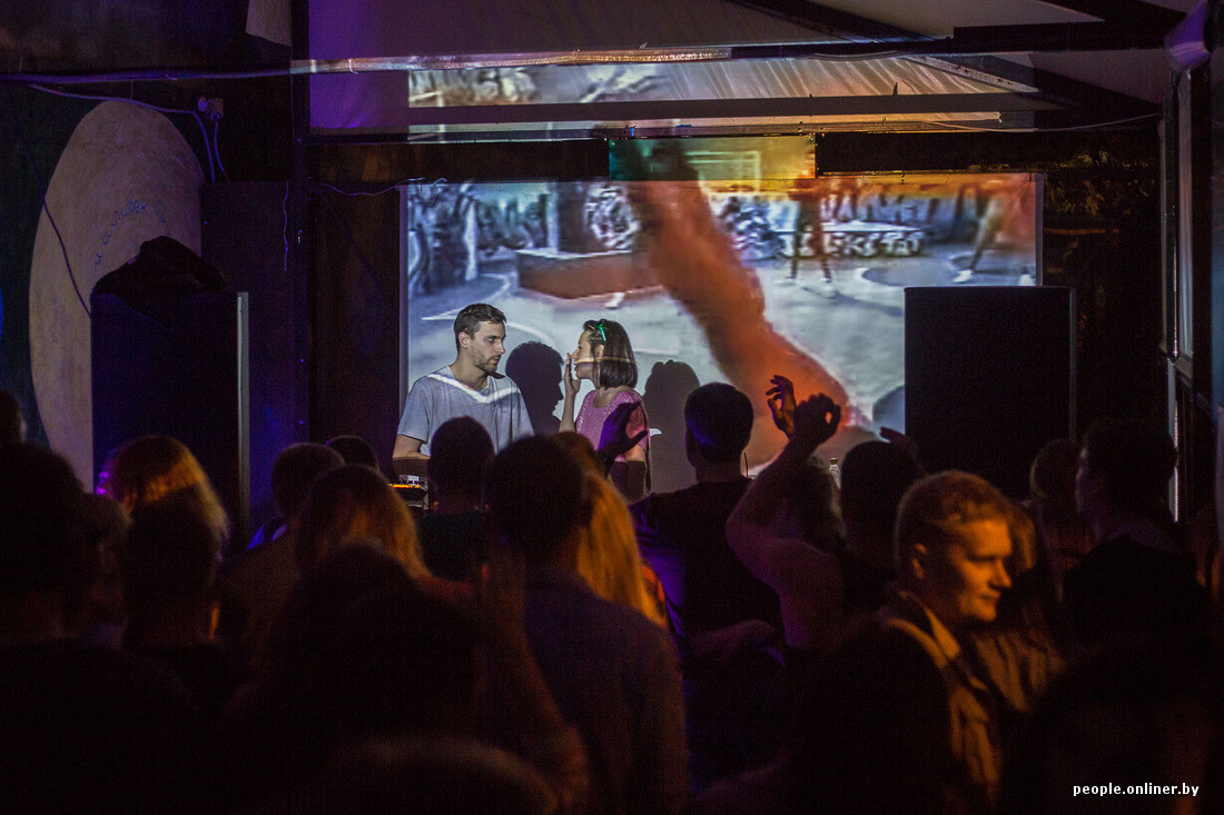 Терраса «Хулигана» забита тусовщиками, плотным басом утрамбовывает публику Mustelide — модная минская электронщица.