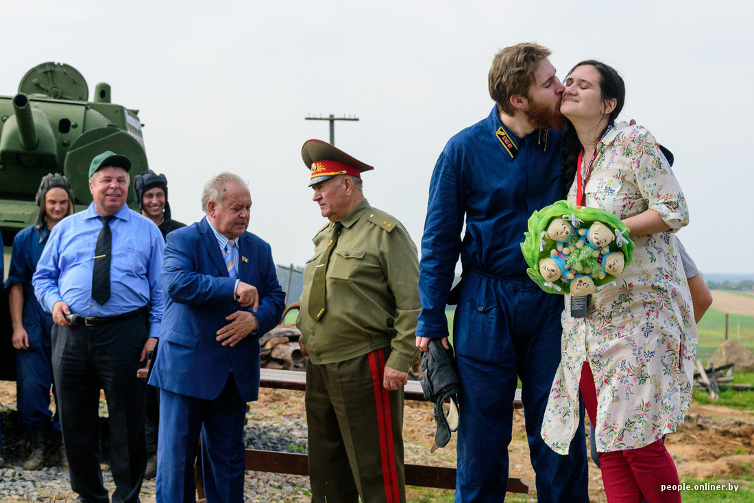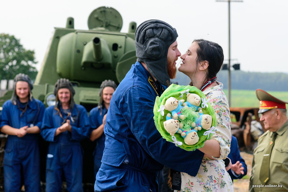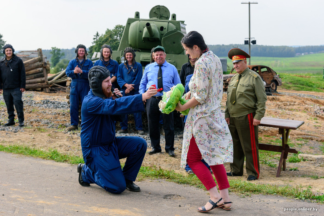 Перед танковым боем зрителям запомнился интересный эпизод: парень вылез из башни с букетом и сделал девушке предложение.