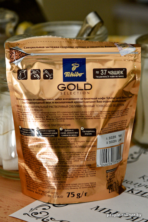 Gold есть Gold. Значит, перед нами лучший представитель линейки от Tchibo. Это, кстати, единственный образец польского производства (львиная доля экземпляров на полках магазинов и в нашей дегустации — из России).