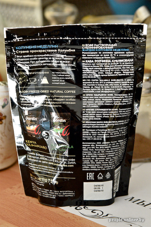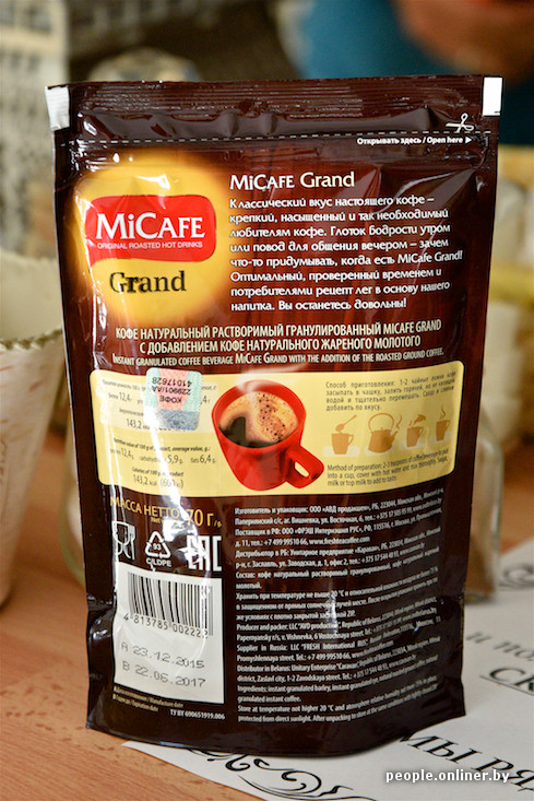 В принципе, оценки образец получил средние (была даже одна восьмерка). Павел отметил, что «даже если это дешевый напиток, то вкус на кофе похож». Но шоколадных оттенков, заявленных на упаковке, никто не обнаружил. Возможно, они слишком тонки. Не рассчитывайте особенно на обещания производителя.