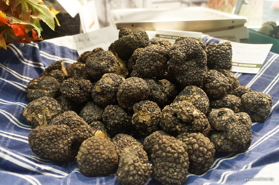 Корреспондент Onliner.by оказался на выставке в Альбе в середине недельного автотура по Северной Италии «Land Rover открывает Европу», а потому не решился на покупку ценного грибочка — говорят, чтобы сохранить деликатес хотя бы две недели (это максимальный срок хранения), нужно завернуть гриб в мягкую бумагу, положить в контейнер, а после — в холодильник. При этом бумагу следует менять каждый день. Довольно требовательно для продукта, чья стоимость начинается от 25 евро за штучку. Но такова цена итальянской гастрономической изысканности.