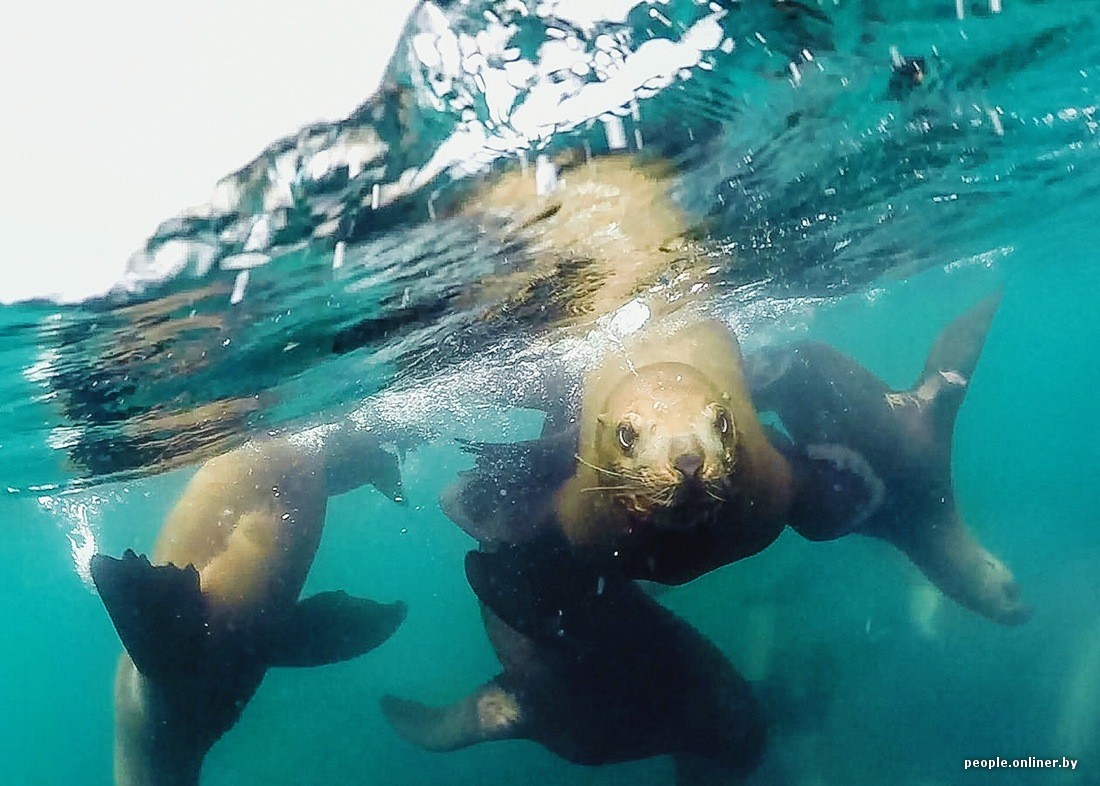 За ними ходим наблюдать вместе с учеными, которые живут на мысе и изучают подводный мир. Я купил себе гидрокостюм, ласты — отдал практически всю зарплату. Один раз у меня даже получилось поплавать с косатками — я считаю это главным безумием, которое я делал на Камчатке. Запомню на всю жизнь.