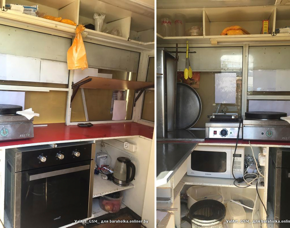 — Минимальная цена аренды! Полностью укомплектован (хорошая кофе-машина, духовой шкаф, аппарат для шаурмы, блинница, гриль и много другого). Есть проект на электрику, — зазывает в объявлении владелец. Правда, по указанному номеру никто не отвечает, поэтому стоимость объекта остается тайной.