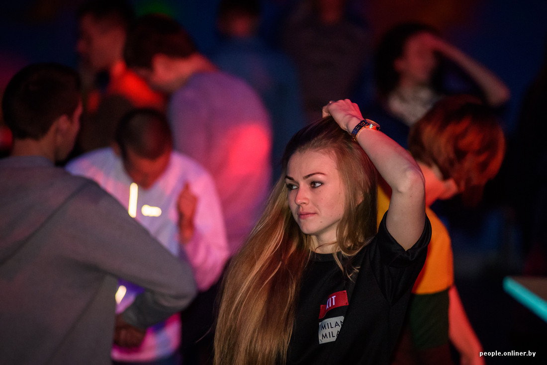 «Смак» заходится в хаотичном танце, и в этой эклектике телодвижений уже проблематично разобрать школу, стиль и другие особенности динамичных манипуляций конечностями. Говорят, есть еще одна дискотека, но в деревне. Туда съезжаются из Сморгони и Островца — бывает, что в массовых танцах участвует больше трех сотен человек. Но местные отправляться туда не советуют.