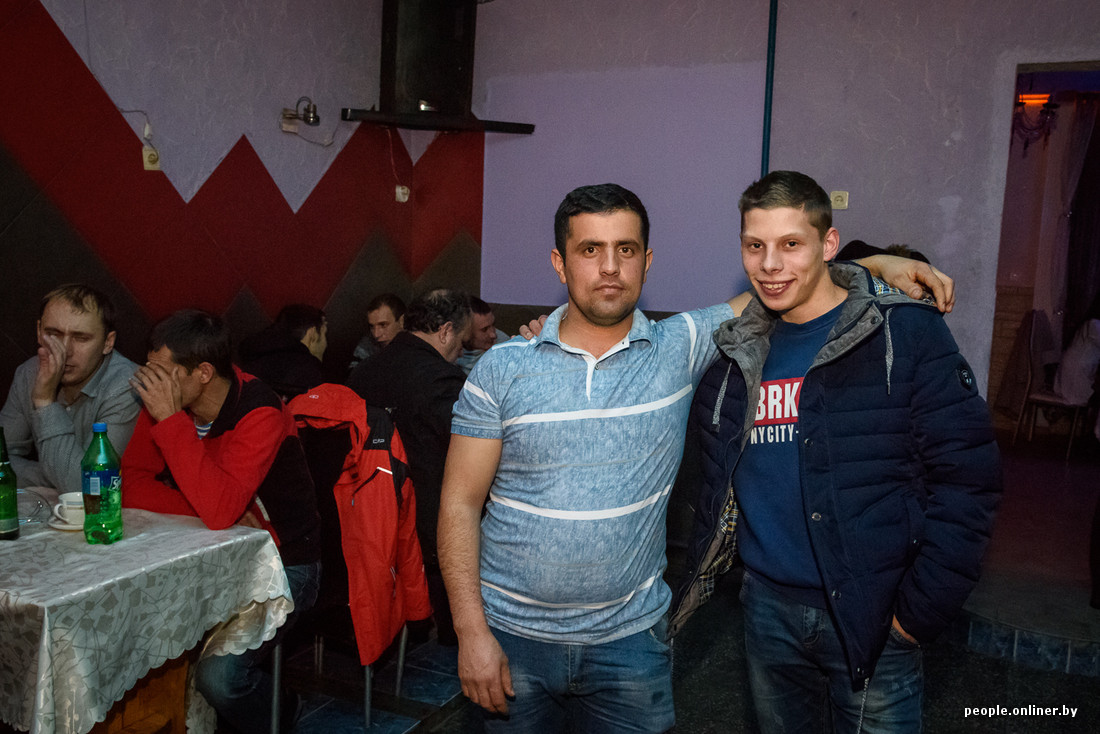 Саша и Дима живут в Островце уже несколько лет — считай, ассимилировались. Работают, как и большинство обитателей города, на стройке. В свободное от работы время не против немного покуролесить. Сейчас — в «Смаке», чуть позже — в «Галактике». Есть, наверное, только один повод взгрустнуть: девушки в Островце в дефиците.