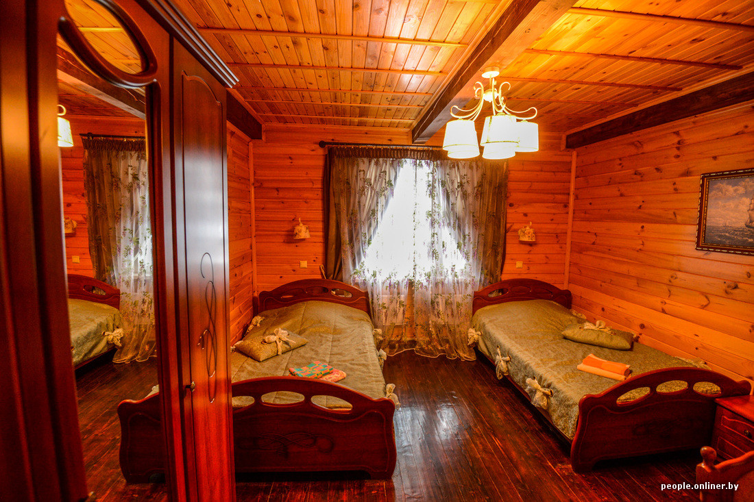 — Мы можем в сезон принять 180 человек, — объясняет руководство комплекса. — Здесь и свадьбы играют, и семинары проводят. Но самая горячая пора — лето и новогодние праздники. Вот, к примеру, с 16 декабря по 14 января уже практически не осталось свободных мест. Питерцы, москвичи да свои, белорусы, все забронировали, хотя стоимость коттеджа с двумя спальными местами за сутки — 63 рубля.