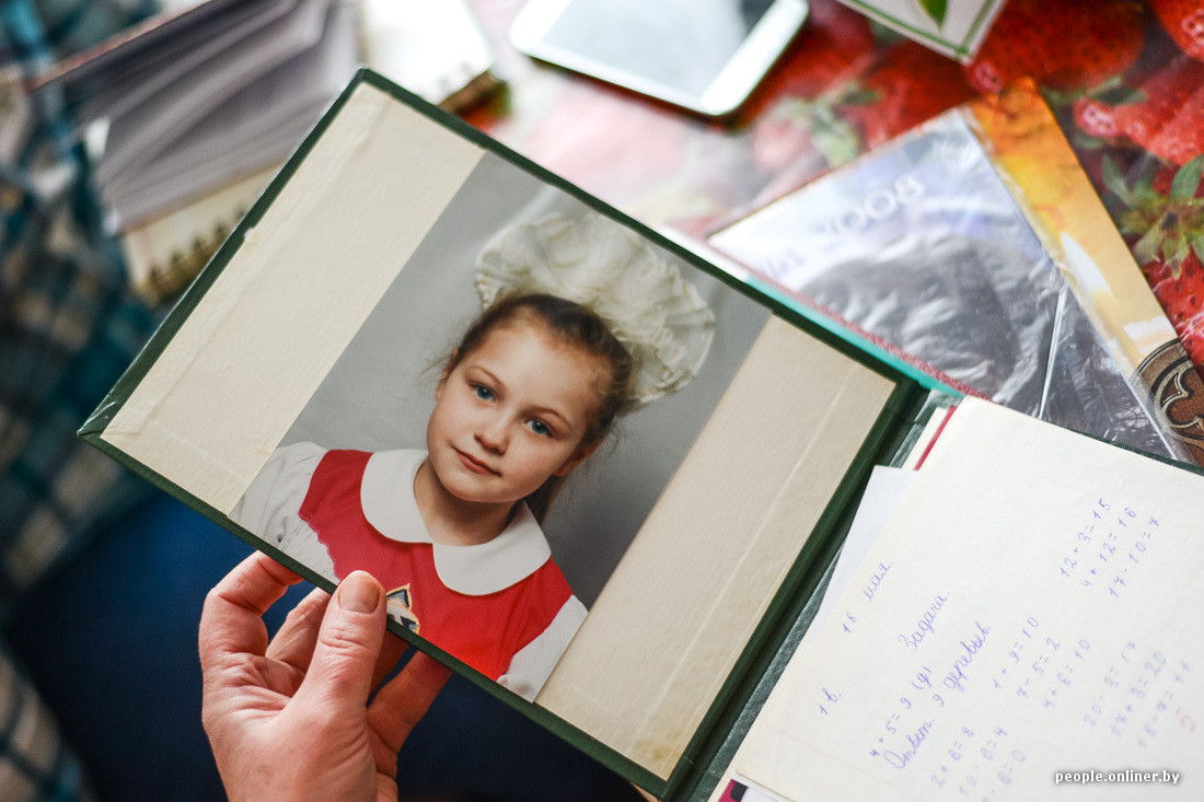 Катерина Владимировна приносит альбомы с фотографиями из детского сада, школы, первые контрольные Насти. Она улыбается, вспоминая, какой шустрой была ее дочка, как ей не понравился БНТУ из-за одного только здания и как легко она перебросила документы в нархоз.