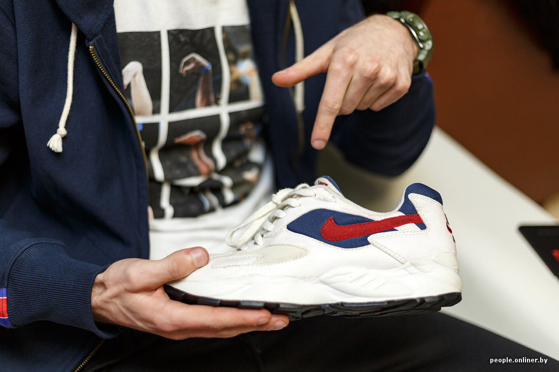 — Все просто. Мода с Запада понемногу доползла до нас. Мы стали думать, как они, выглядеть, как они, и одеваться, как они, — подхватывает Илья. — Правда, с некоторым опозданием. Беларусь в плане интереса к кроссовкам — это вообще не показатель. Желание, конечно, огромное, вот только возможностей не хватает. Во-первых, надо понимать, что кроссовки требуют вложений. Во-вторых, у нас не так много мест, где можно достать оригинал. В столице, по сути, есть один тематический магазин, который держит марку.