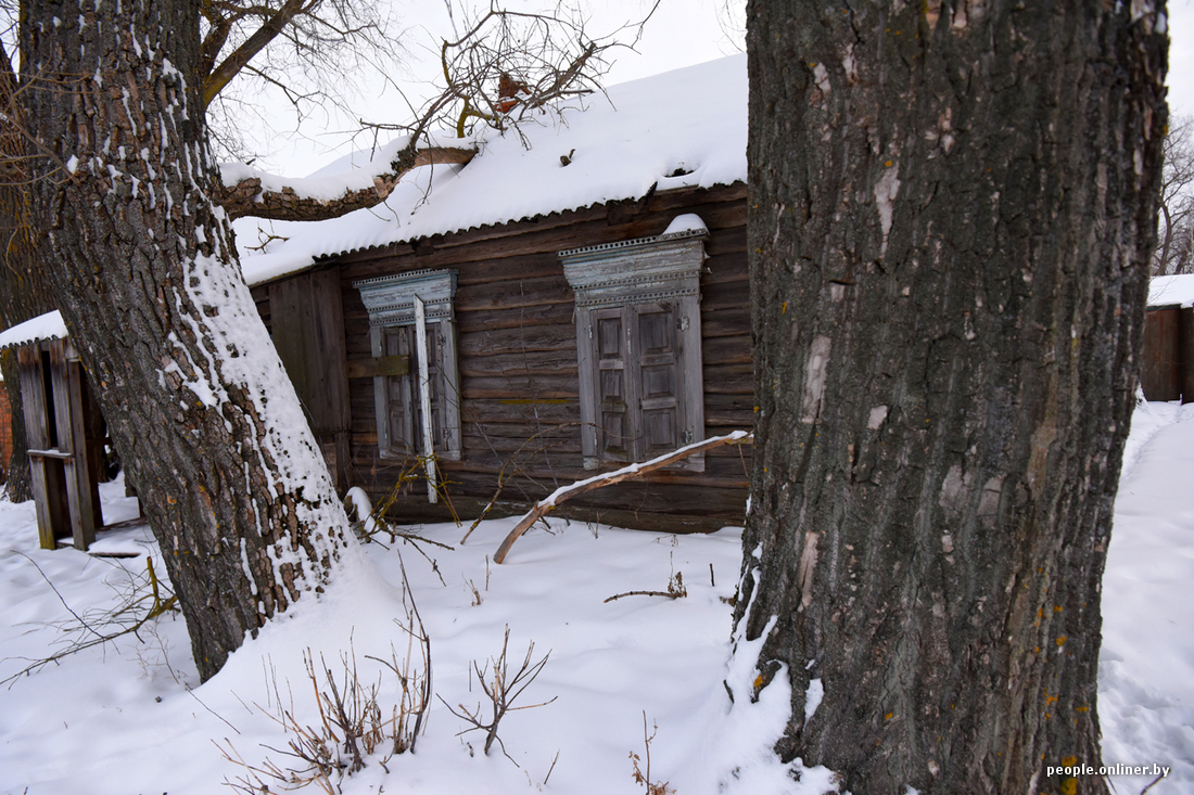 Жилые дома мы отыскиваем по вытоптанному снегу. Их мало.