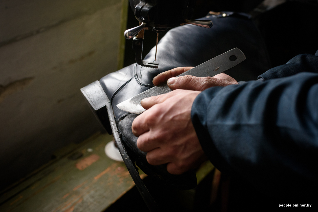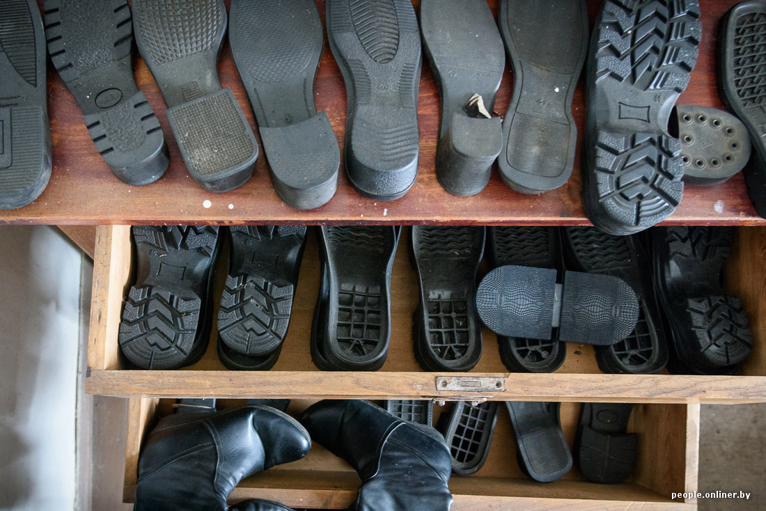 — Я берусь только за ремонт обуви из кожи — за самый сложный тоже. Такого мастера в районе поискать. Вот в доме быта что обычно делают? Набойки и профилактику. А я могу даже пошить по размерам на заказ, — с гордостью говорит мужчина и показывает сапоги. — С детства любил это дело — шить и кроить.