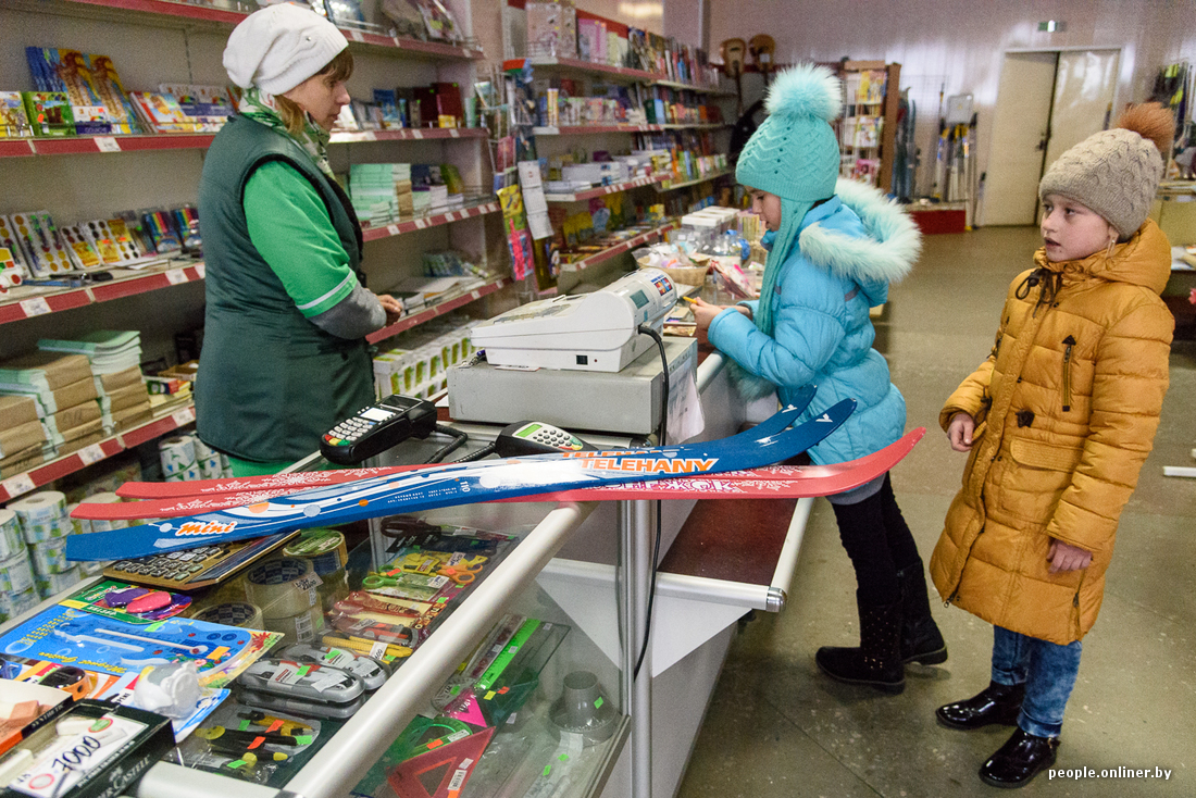Лыжи в Телеханах мы все же отыскали — в уголочке местного универмага. Дизайн некоторых сотни белорусов вспомнят из детства: те же шрифт и расцветки.
