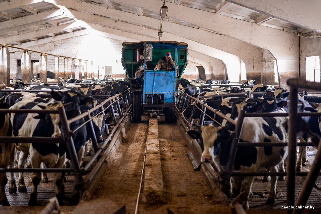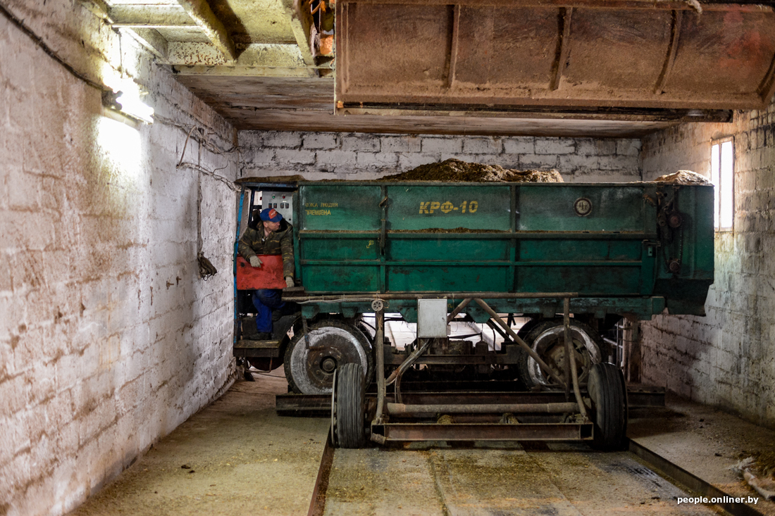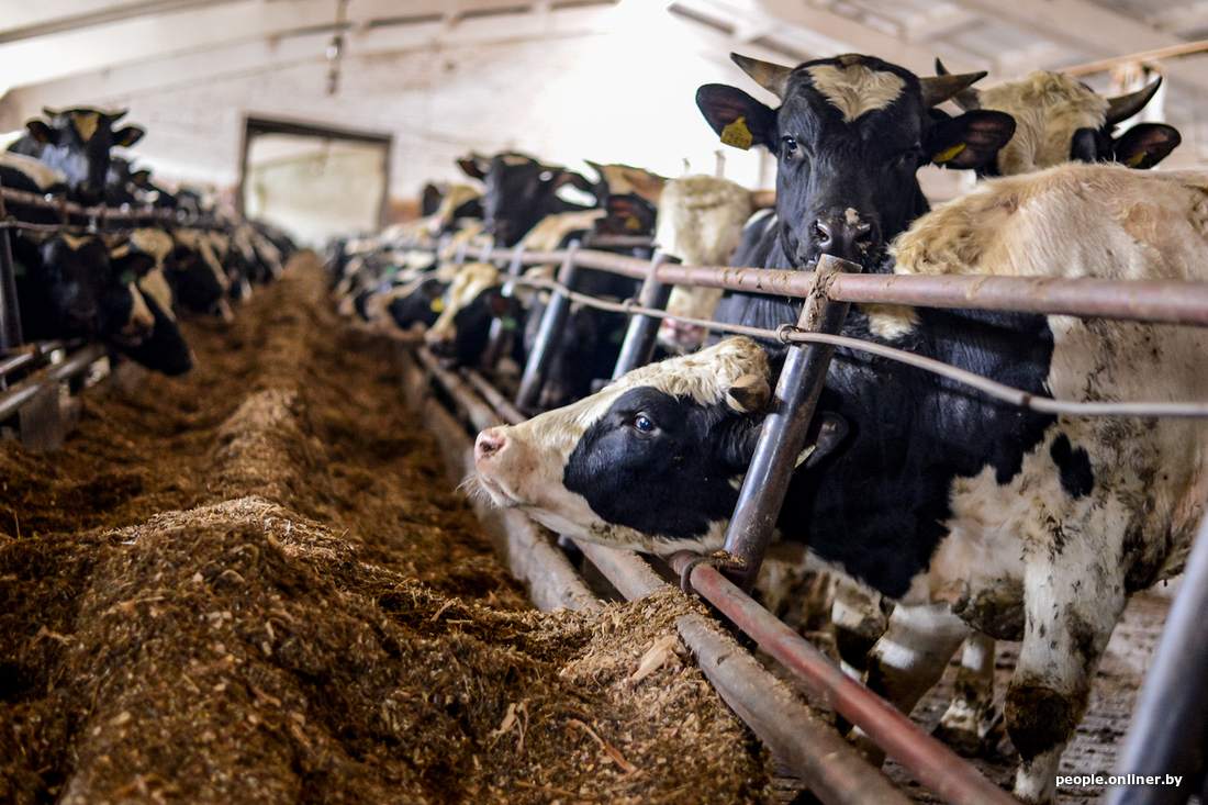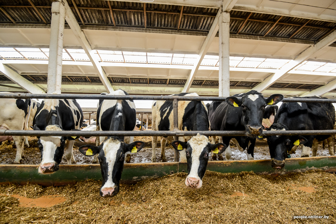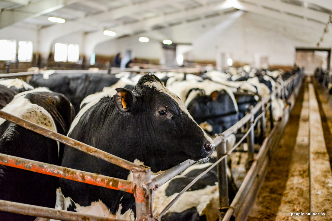— Это силосом пахнет. Сейчас рабочие кормят бычков, — бодро говорит 33-летний бригадир производственной бригады животноводов Николай Михальчик. — Корма — это самое главное. Они должны быть качественными, сбалансированными — и тогда будут привесы. У нас, к примеру, привес у бычков в прошлом году был 962 грамма в сутки. Для сравнения, самые массовые показатели по стране — 600—700 граммов.