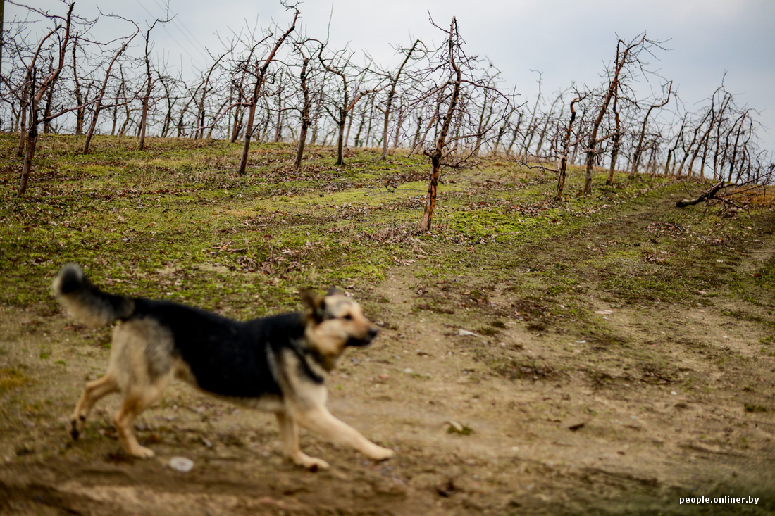 По дороге обратно в Остромечево Жанна Горустович останавливается возле входа в огромный сад с низенькими яблоньками. Сад почти на 200 гектаров (около 400 футбольных полей) кажется бесконечным. Весной тут, наверное, невероятная красота.