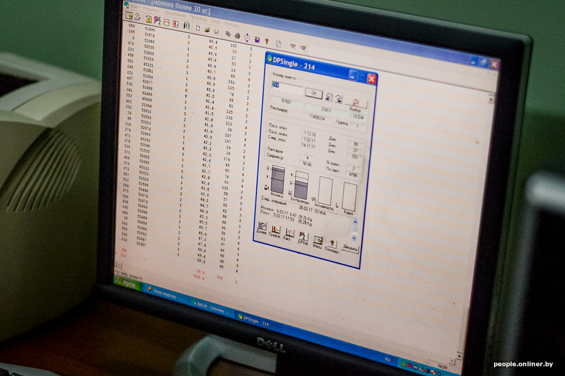 — Коровки со специальными чипами заходят в загончики, доярке остается только поставить доильный аппарат — и молоко поступает по молокопроводу в специальные емкости, — показывает доильный зал Николай. — Оттуда уже — в молоковозы — и на завод. Количество литров, жирность и все остальное можно увидеть на компьютере. Смотрите: вот мы видим, сколько и когда какая коровка молочка дала.
