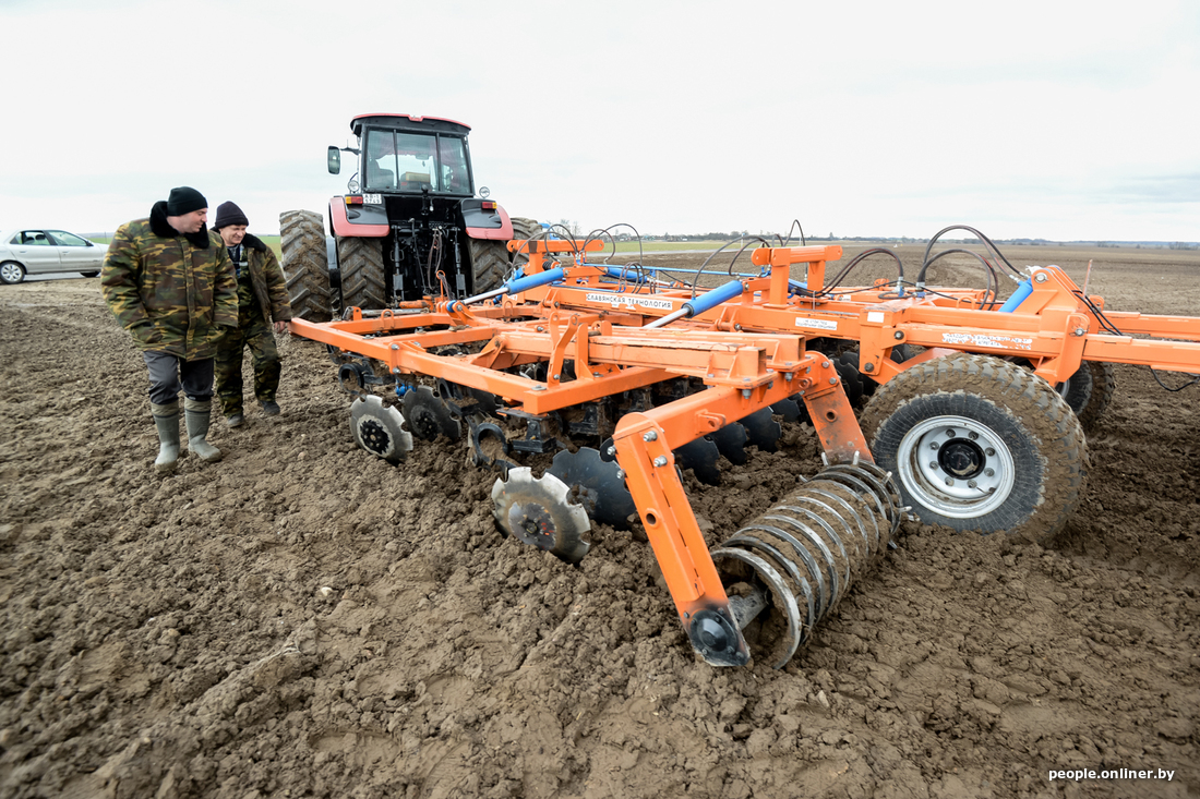 Снег здесь давно сошел, земля немного просохла, с первых дней марта стартовали полевые работы. На полях уже работают американская техника John Deere, немецкие комплексы Jaguar. Ну и, конечно, не обходится без белорусских тракторов.