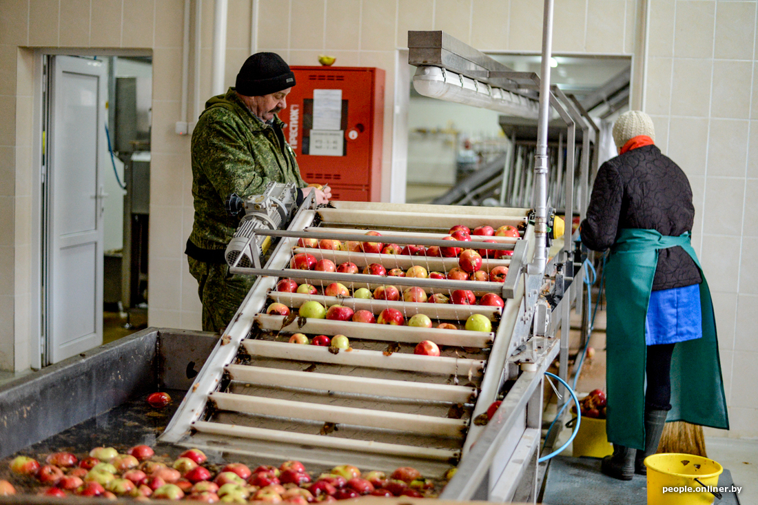 — У нас больше 20 сортов яблок. Часть продаем в магазины Беларуси, часть — за границу. Ну, а остальное — в сок прямого отжима, без сахара, воды и других консервантов. Мы производим его уже три года и по гипермаркетам продаем.