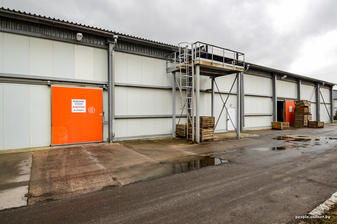 На территории комплекса — несколько больших, похожих на ангары зданий. Здесь растят быков. Мы проходим по резиновым коврикам со специальным раствором и попадаем внутрь. Тут стоит густой специфический запах.