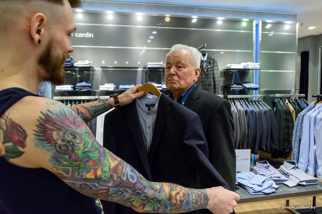 «Ох, ну у тебя музей прямо!» — качает головой дедушка и оглядывается по сторонам. Через пару часов вместо майки Антон наденет пиджак и научится завязывать галстук, а Вячеслав Васильевич примерит модные джинсы с подворотами. Мы решили восстановить гендерный баланс и подготовили мужскую версию битвы поколений. Как пенсионер и тату-модель переодевали друг друга, смотрите в проекте Onliner.by.