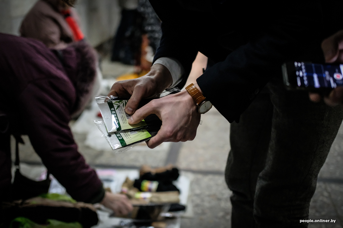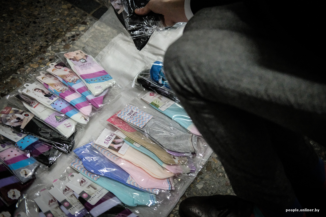 Ввиду того, что белорусский мужчина абсолютно не готов отдавать 34 рубля за пару носков, спускаемся в обитель народной торговли — подземный переход возле станции метро «Площадь Якуба Коласа».