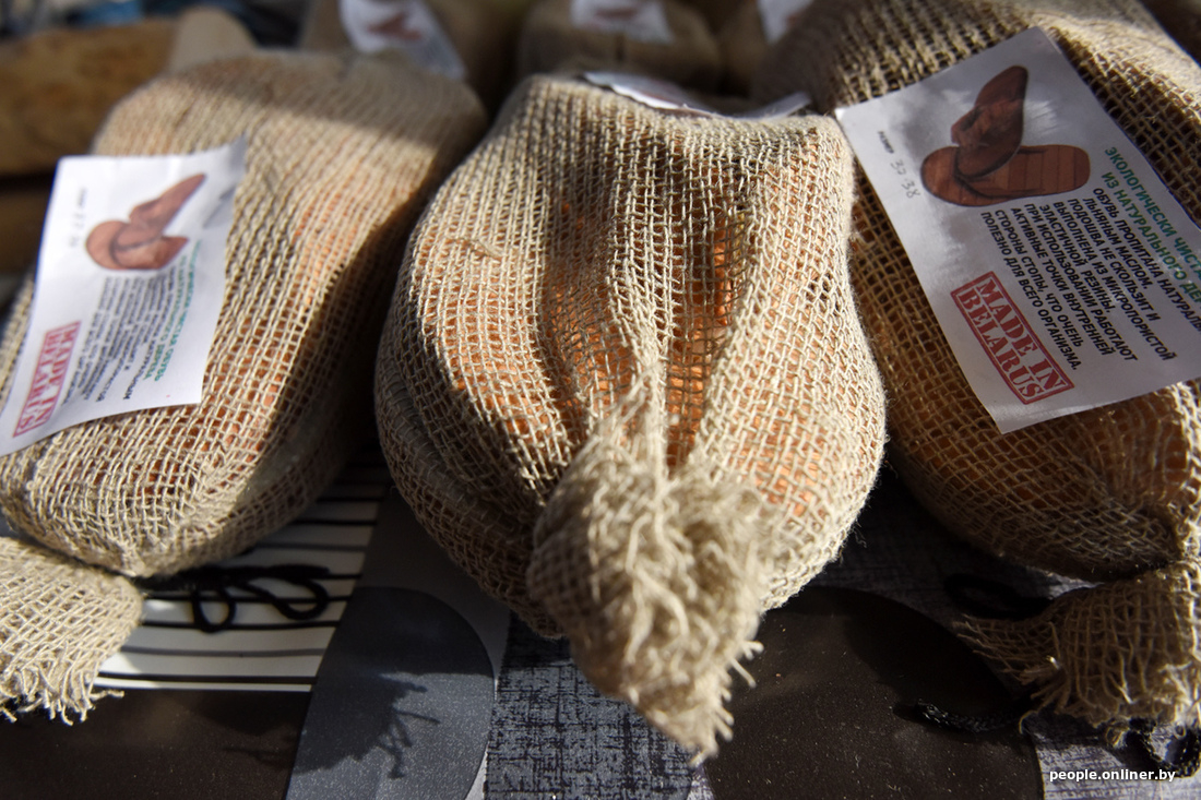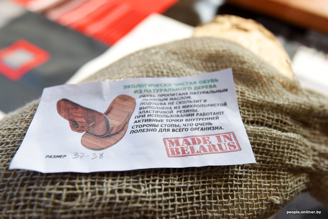 На столе ряды готовой продукции — ольховые шлепанцы. Говорит, уходят на ура — белорусский сувенир! (Что удобно, сувенир этот может с одинаковым успехом быть украинским, русским, эстонским и каким угодно: зарубежные заказчики партий просят Демчука не ставить его логотип.)