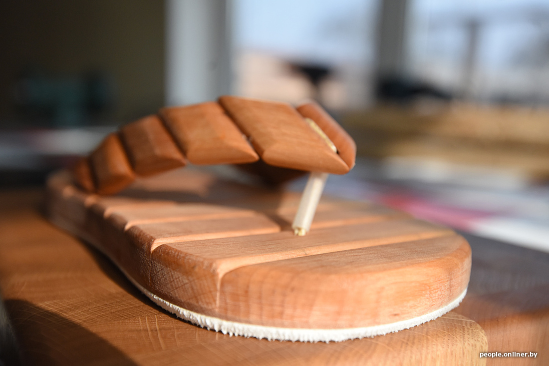 Откуда вообще взялись деревянные тапки? Что за блажь? Демчук не сам их изобрел, в интернете можно «нагуглить» похожие варианты. Говорит, искал автора, но так и не нашел. Поэтому пришлось конструировать самостоятельно.