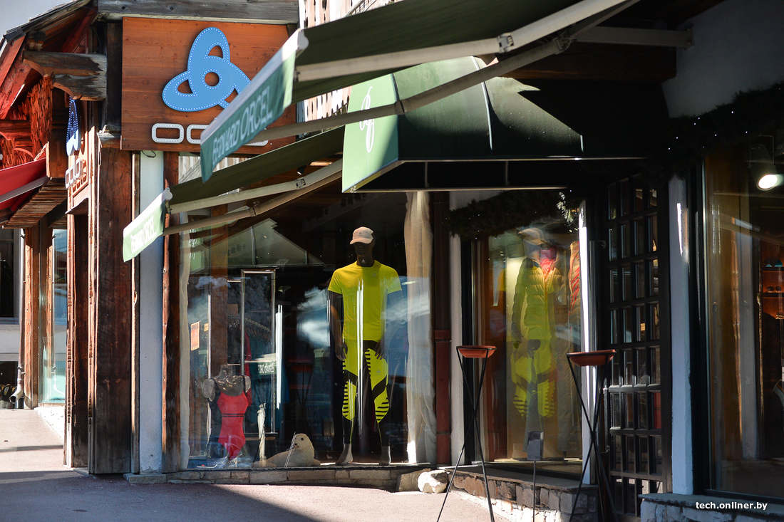 Недалеко от главного подъемника — аллея бутиков. Витрины не столь игривые, как в Милане или Каннах. Имеется все, что нужно простому человеку на отдыхе зимой.