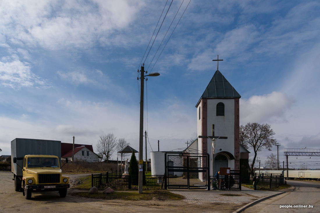 По рельсам со свистом несется товарняк, а мы едем в старую Городею. Эта часть поселка стоит на пригорке и смотрит на новую свысока. Тут находится административный центр — поселковый совет, милиция, церковь, костел да железнодорожный вокзал.