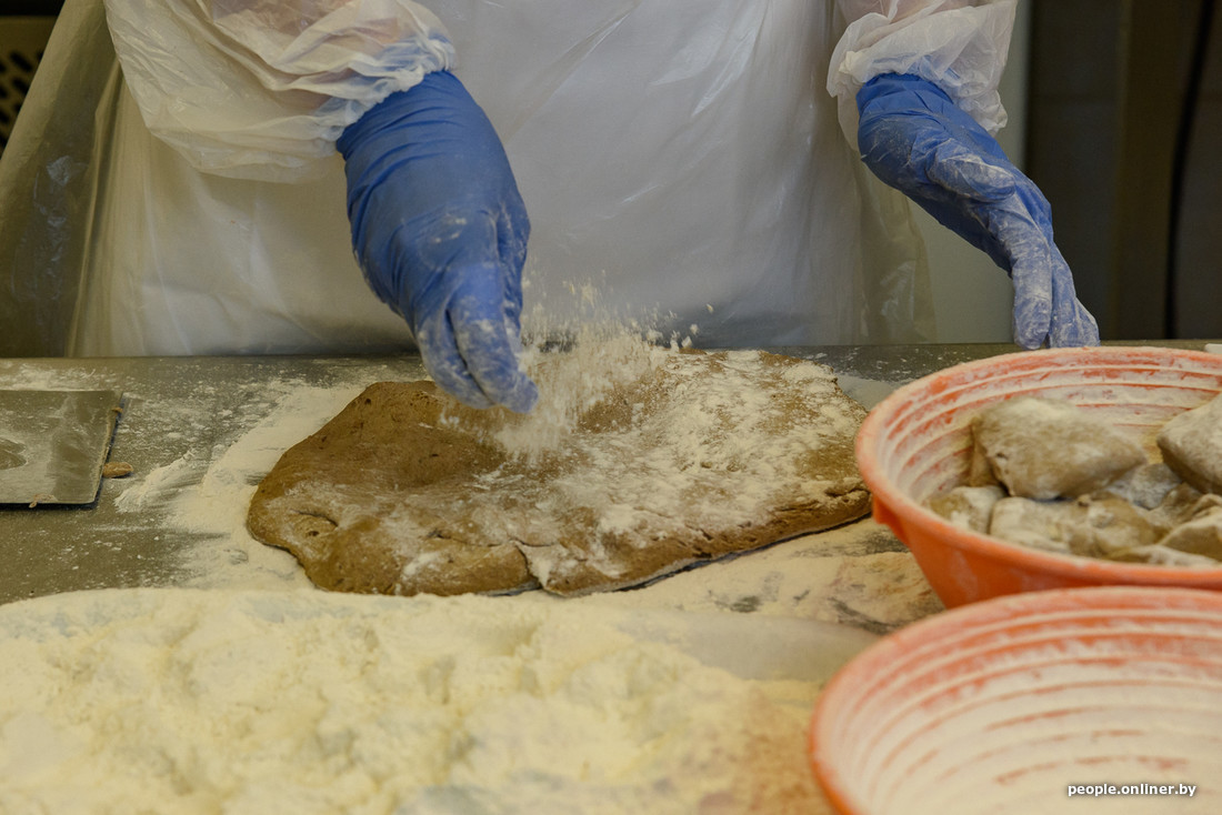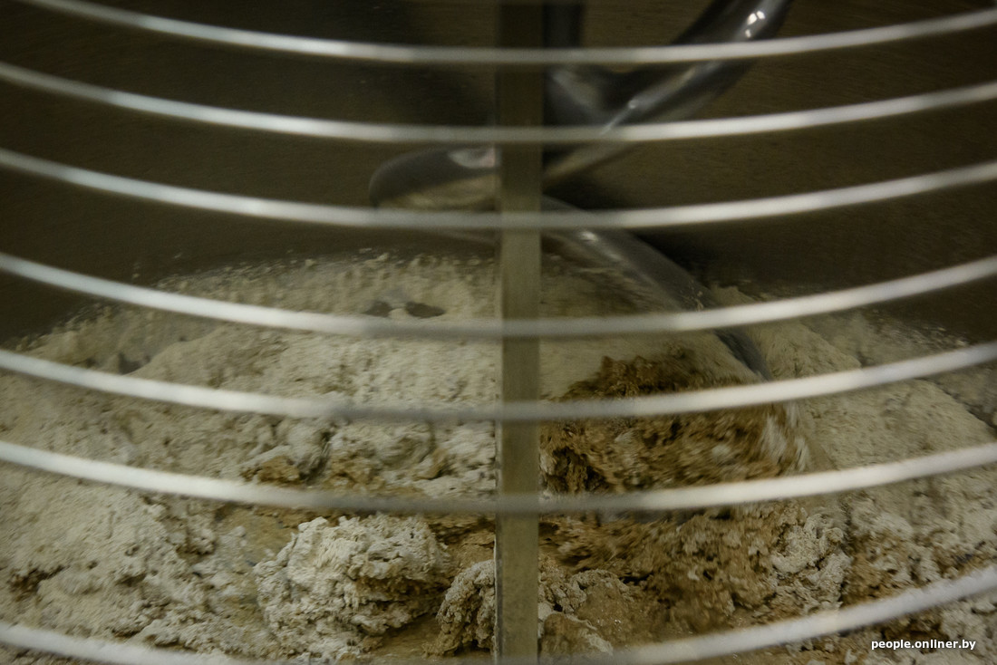 Все это делается примерно так: готовится смесь из муки и других ингредиентов, все ссыпается в тестомес, доливается вода и добавляется закваска.