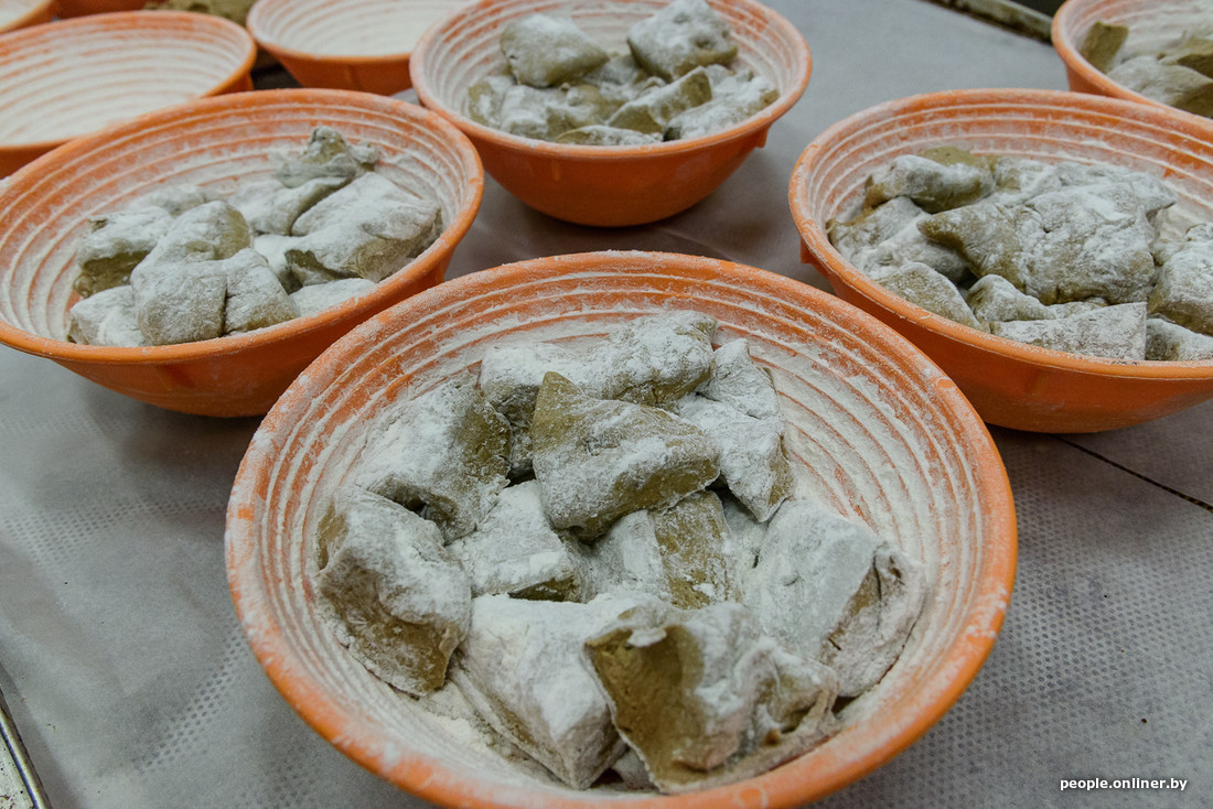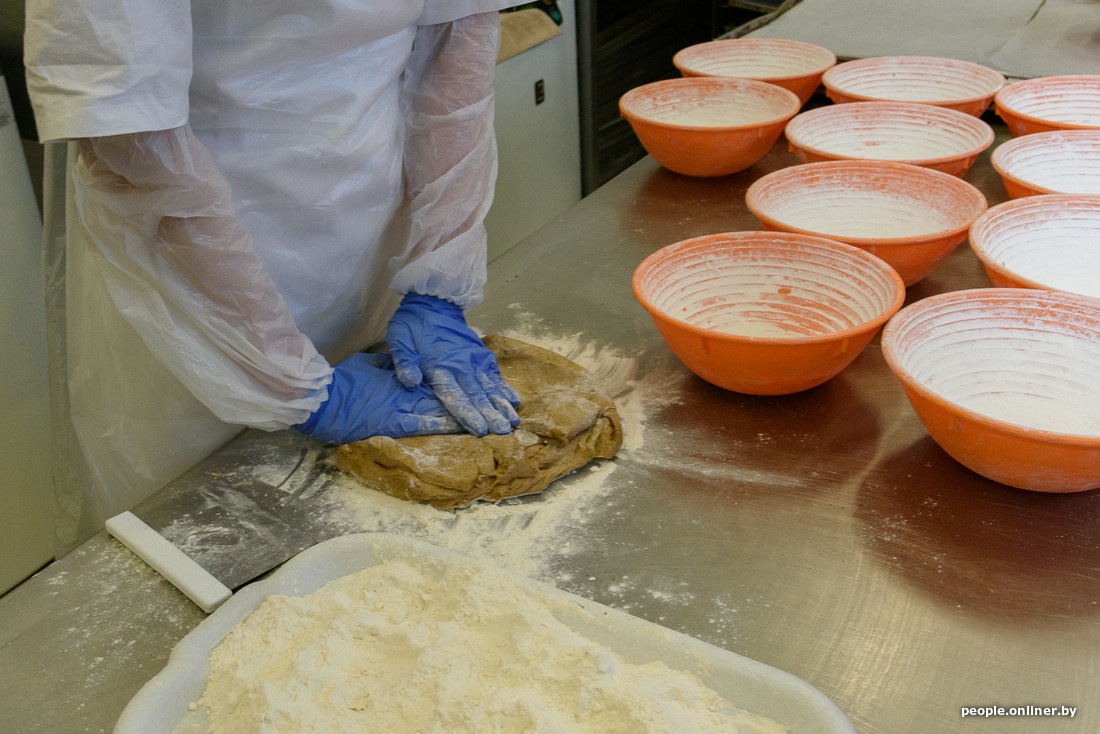 Сырье готовят на два-три замеса. В одном замесе — десять хлебов. Чтобы получить нужную форму, замешанное тесто делится на части, складывается в чашу и отправляется в расстоечный шкаф. Примерно через полчаса его можно будет ставить в подовую печь.