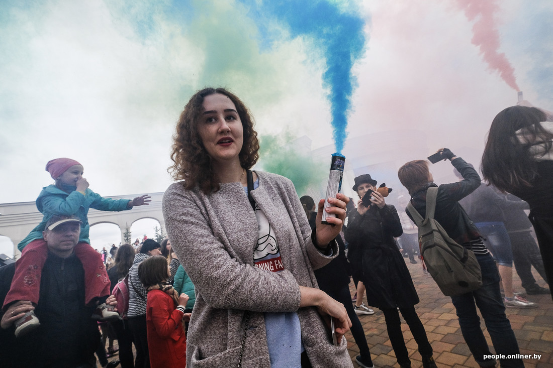 Приходит время, и Минск наполняется молодыми людьми, насквозь пропитанными красками разных цветов. По ним легко вычислить, что в городе прошел очередной фестиваль красок Холи или что-то в этом роде. Сегодня в парке «Дримлэнд» минчане резвились на фестивале цветного дыма. Описывалось все так: выстроившись в километровое живое кольцо, участники праздника смогут с помощью шашки цветного дыма раскрасить серое небо Минска. Километрового кольца не было, да и участников оказалось не так много, но цветной дым над парком все же распылился.