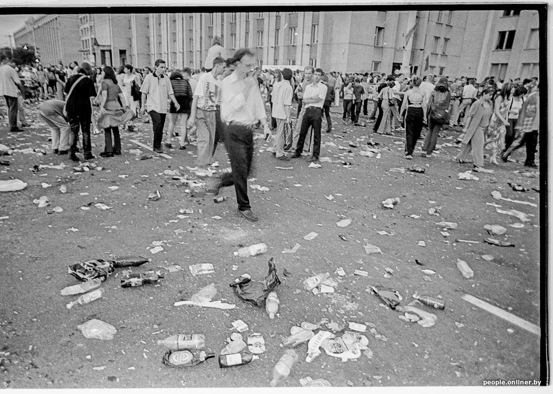 Большой концерт на площади Независимости: мода, молодежь и особая атмосфера (позже в наших репортажах мы более подробно вспомним об этом событии). Здесь еще нет «Столицы», но есть круговое движение. Где-то под ногами — кирпичная крошка.