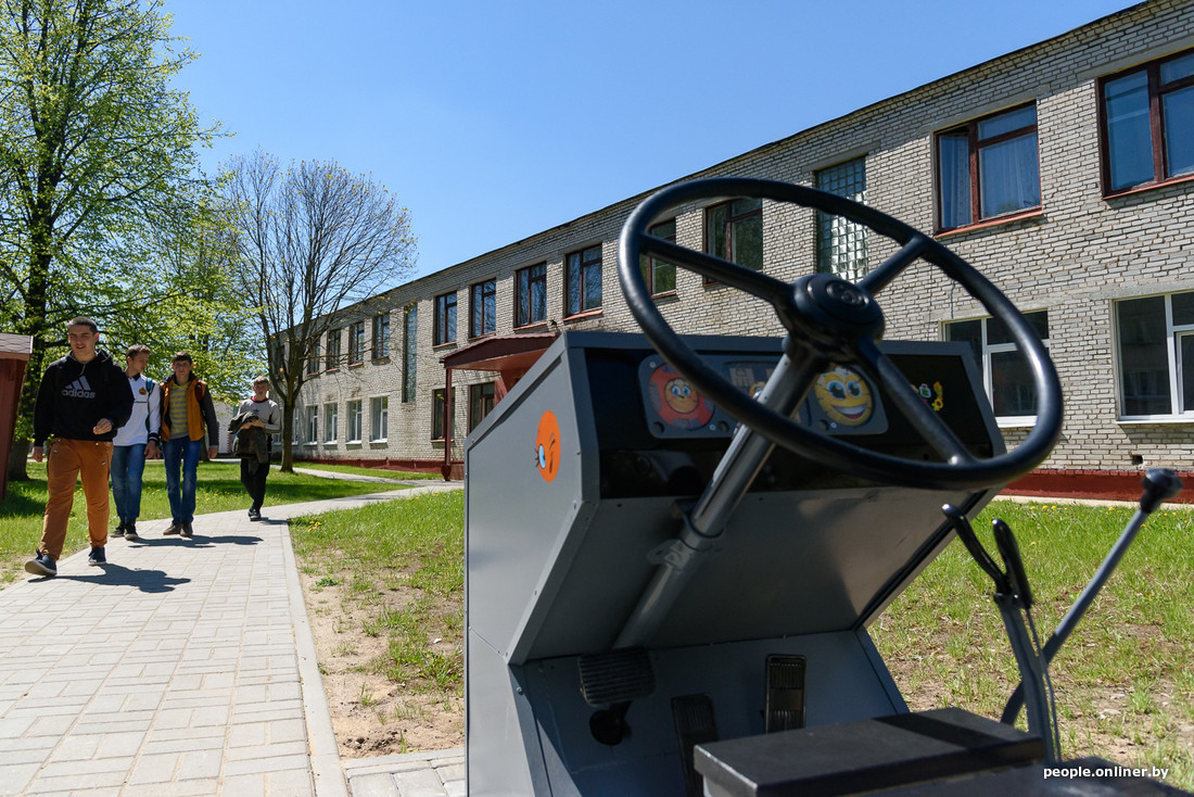 «Хабзай? Никто уже не знает, что это такое», — мужчина в солнцезащитных очках широко шагает по территории колледжа. Идущие навстречу учащиеся Вилейского государственного колледжа тихо здороваются. Не армия, конечно, но подростковым бунтарством и не пахнет. Директор Игорь Китиков, в прошлом охранник в казино и бизнесмен, ладит здесь свои законы «полезной демократии».