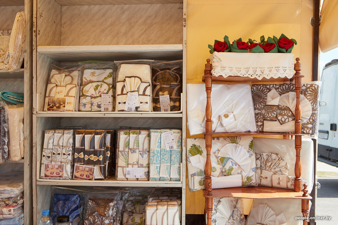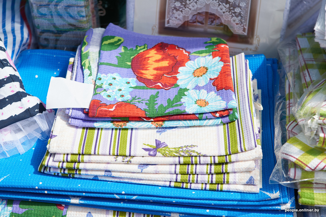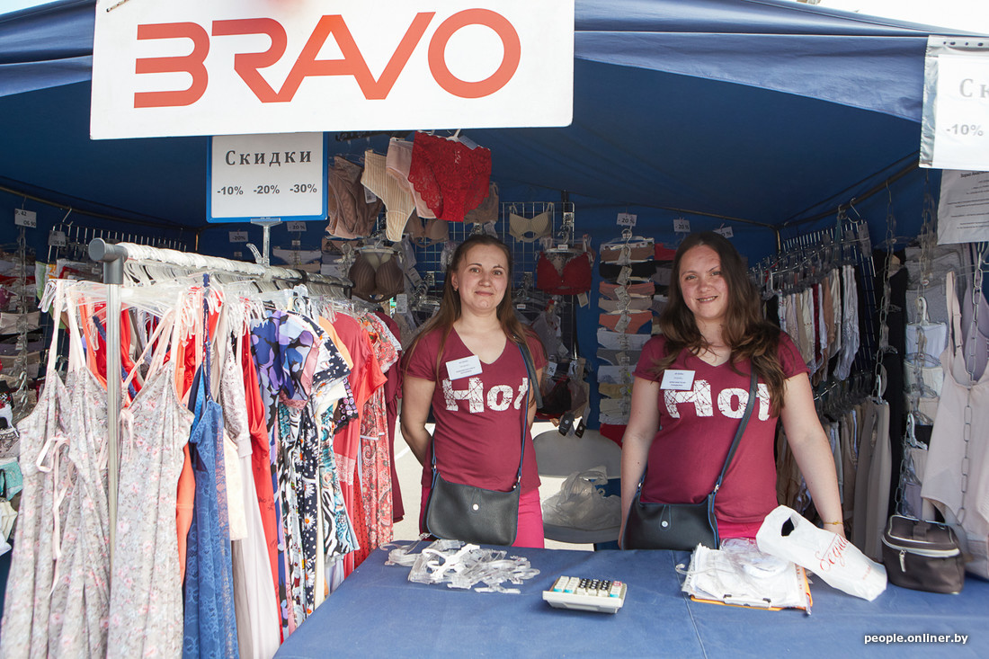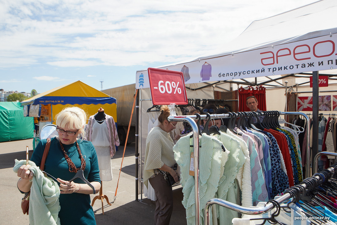 Сегодня в Минске открылась стоковая ярмарка. Платья и сандалии, простыни и пледы, валенки и кружевное белье по таким ценам, что дешевле только воздух. Уже в пятый раз пространство у Дворца спорта заполонили палатки белорусских производителей. Корреспонденты Onliner.by пришли поиронизировать (ведь чем еще заняться на празднике безвкусной жизни?), но не удержались и попали под обаяние душевных продавцов из глубинки.
