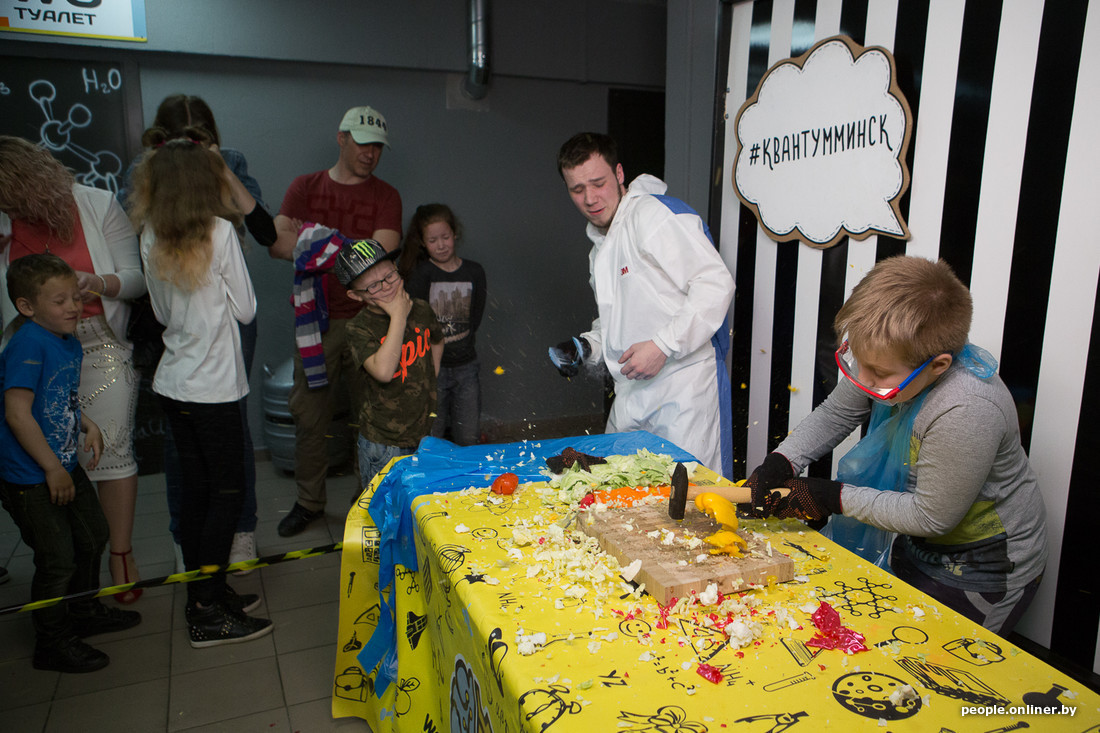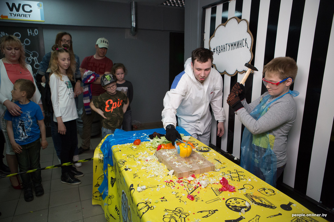 В музее занимательных наук «Квантум» занимались наукой (что логично). Здесь «сумасшедшие химики» дарили всем желающим голубые кристаллы (ничего противозаконного), гости самыми изощренными способами разбивали предметы, замороженные жидким азотом, и рисовали коллективную картину на трехметровом холсте.