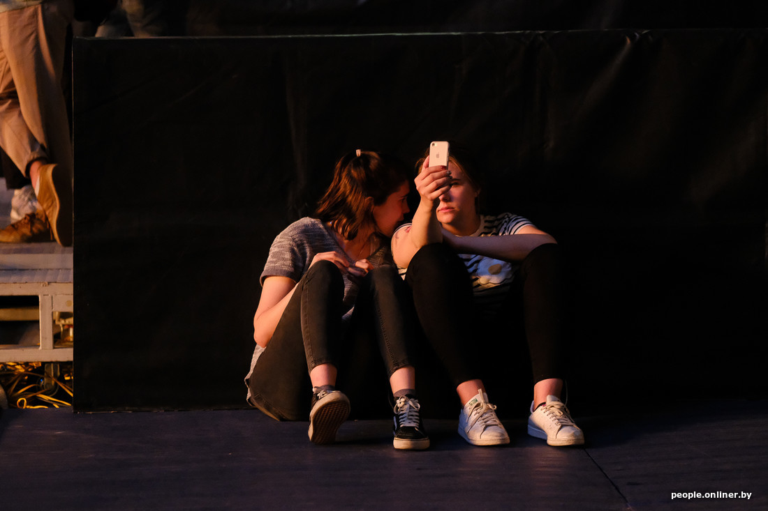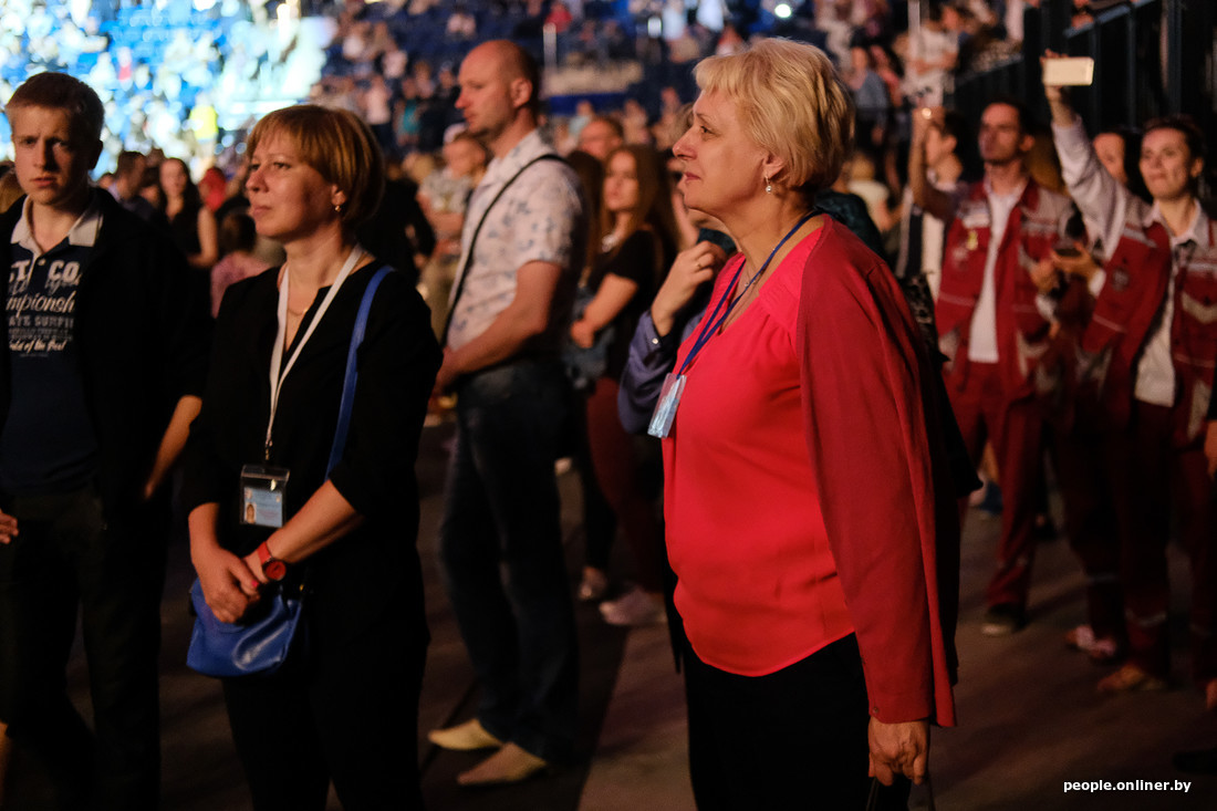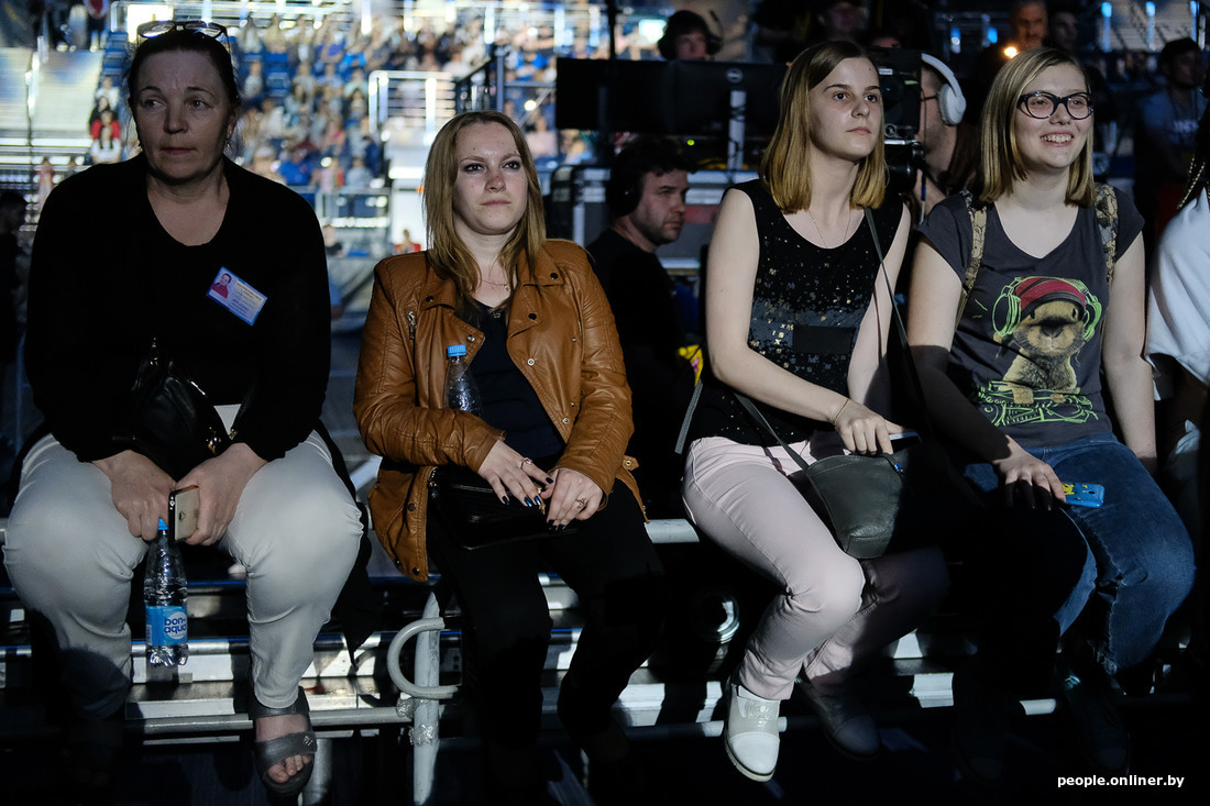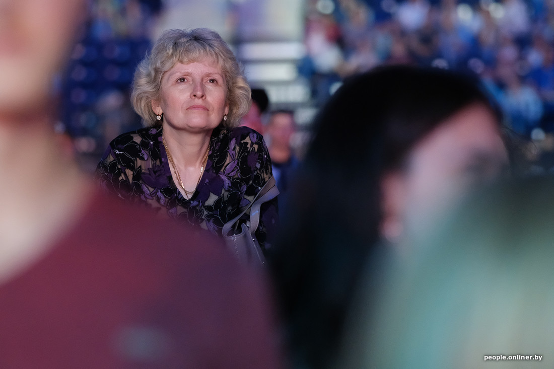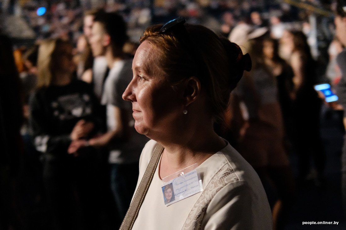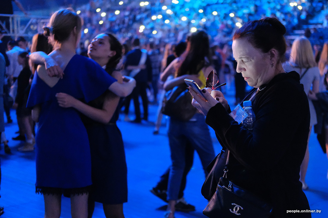 Это было одно из самых организованных заполнений концертной чаши. Группами, ведомые учителями с бейджиками, выпускники минских школ сдавали рюкзаки в камеры хранения, проходили контроль и рассаживались по местам. Несмотря на то что схема распространения билетов вызвала споры (об этом ниже), сказать, что все выпускники шли как на расстрел, нельзя.