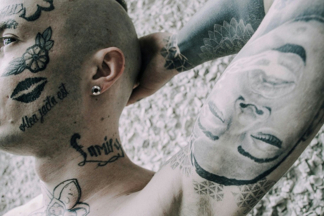 — На втором курсе друзья постоянно меня стебали: «Когда ты сделаешь татуировки на лице?» Я им отвечал, что никогда такое делать не буду. Но потом все-таки решился. Пришел к маме и сказал: «Хочу черную татуху на лице». Она не разрешила. Сказала, что можно только белую. Я пришел в салон, а мастер сказал мне, что белая татуировка на лице вообще не будет видна. Решили делать черную. Прошло немного времени, и я захотел сделать еще — набил пару штук. Потом набил самую большую на дому у мастера и, когда пришел домой, сразу захотел ее свести: было очень непривычно, как на меня смотрят люди. Появилось слишком много внимания, которого я не ожидал.