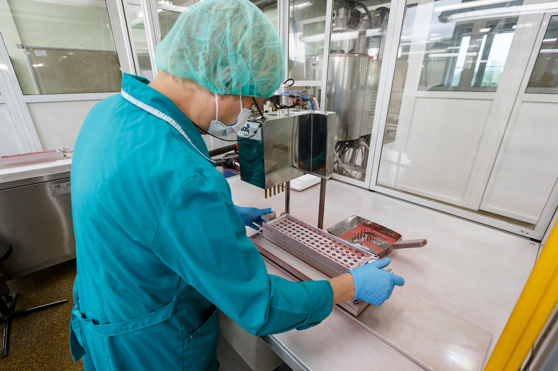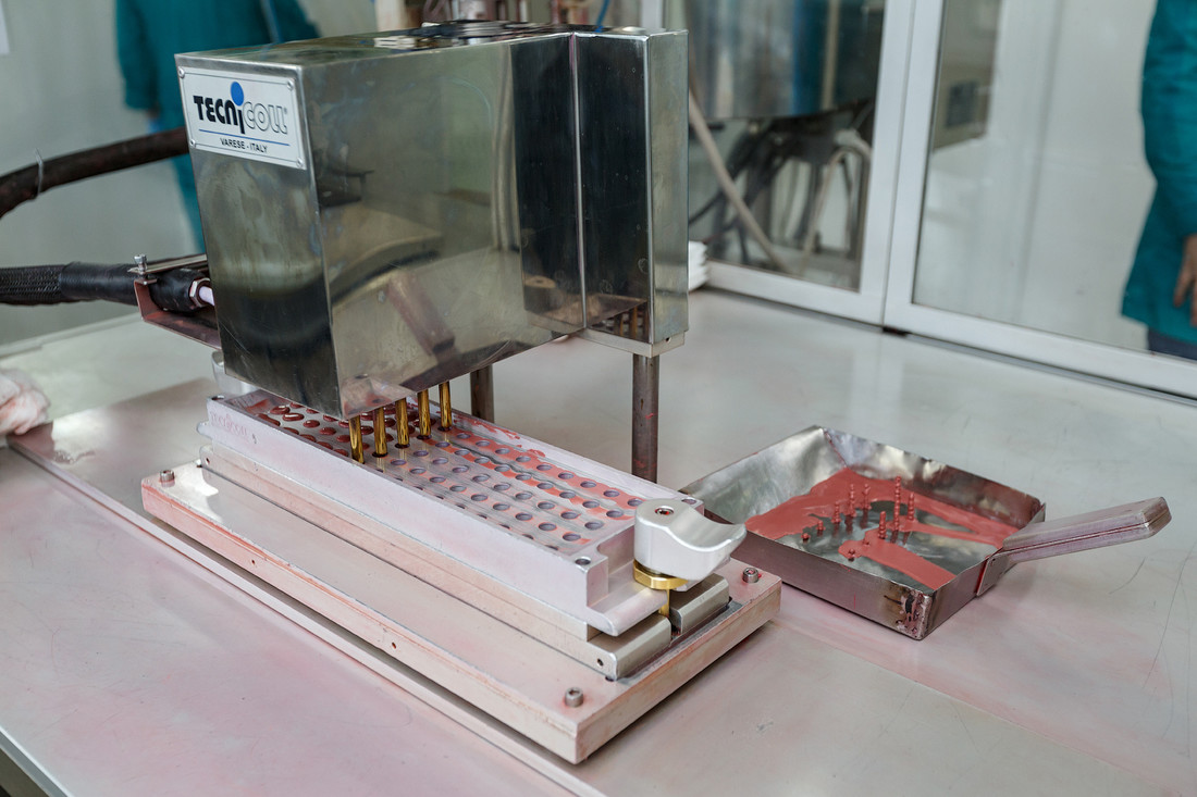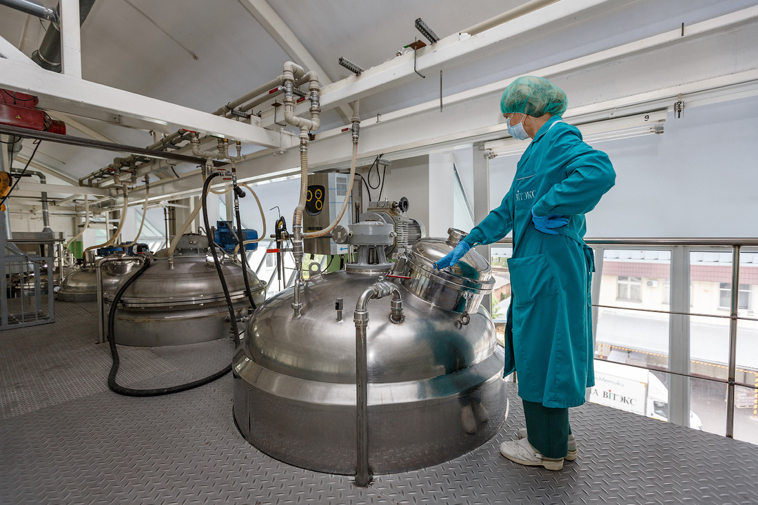 После того как в научном центре создали и опробовали новую формулу, стартует производственный процесс. Мы переодеваемся в халаты, надеваем шапочки, бахилы и идем в цеха.