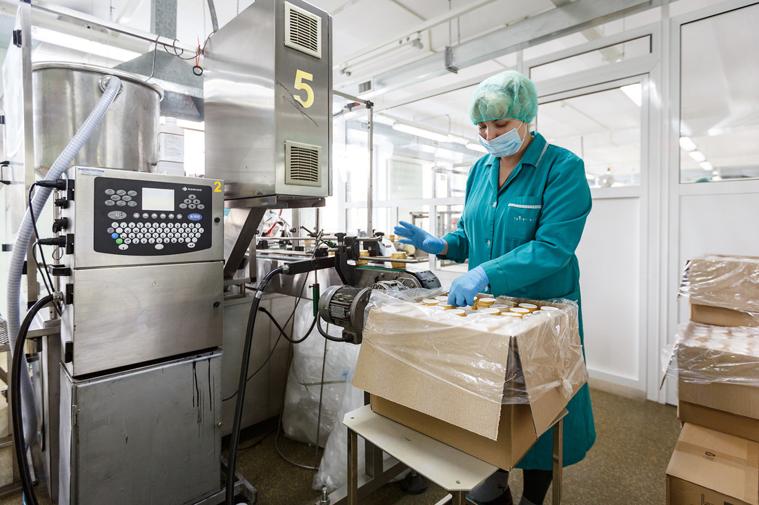 — Единственное, что робот не может делать, — это правильно выставить баночки, — говорит начальник производства Ирина Подлипская. — Здесь пока человек быстрее.
