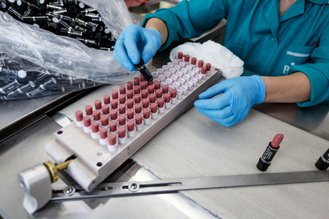 Отдельно на «Витэксе» выпускают помаду. Готовую массу закупают в ЕС, а специальный аппарат фасует ее в патроны. Говорят, что самая ходовая помада — неброских спокойных цветов: белоруски не особо любят экспериментировать. Остальную «декоративку» делает «Белита».