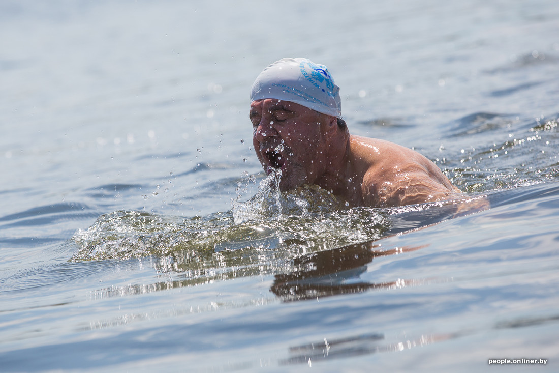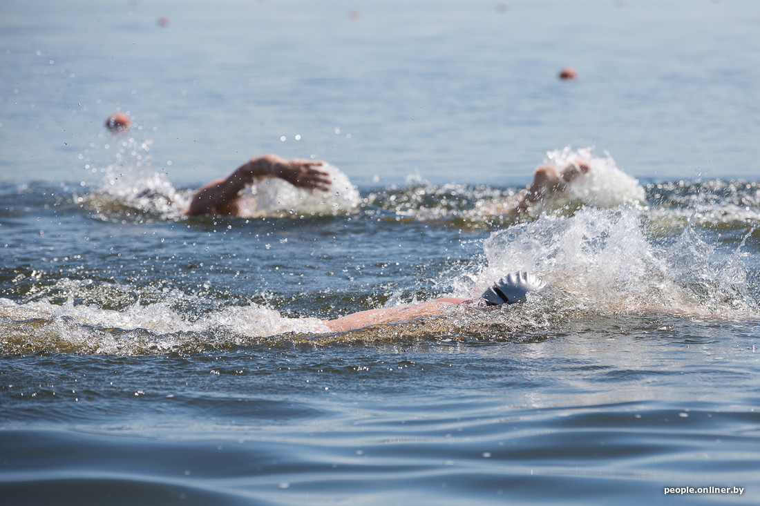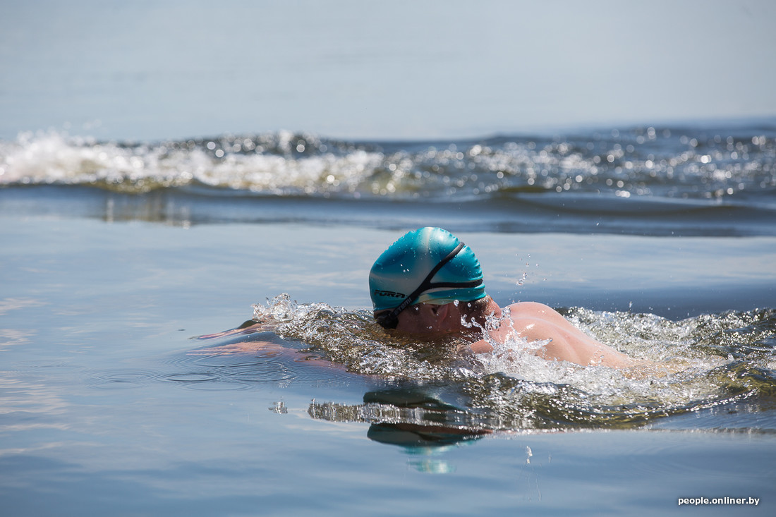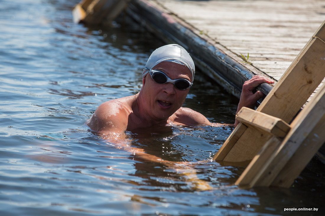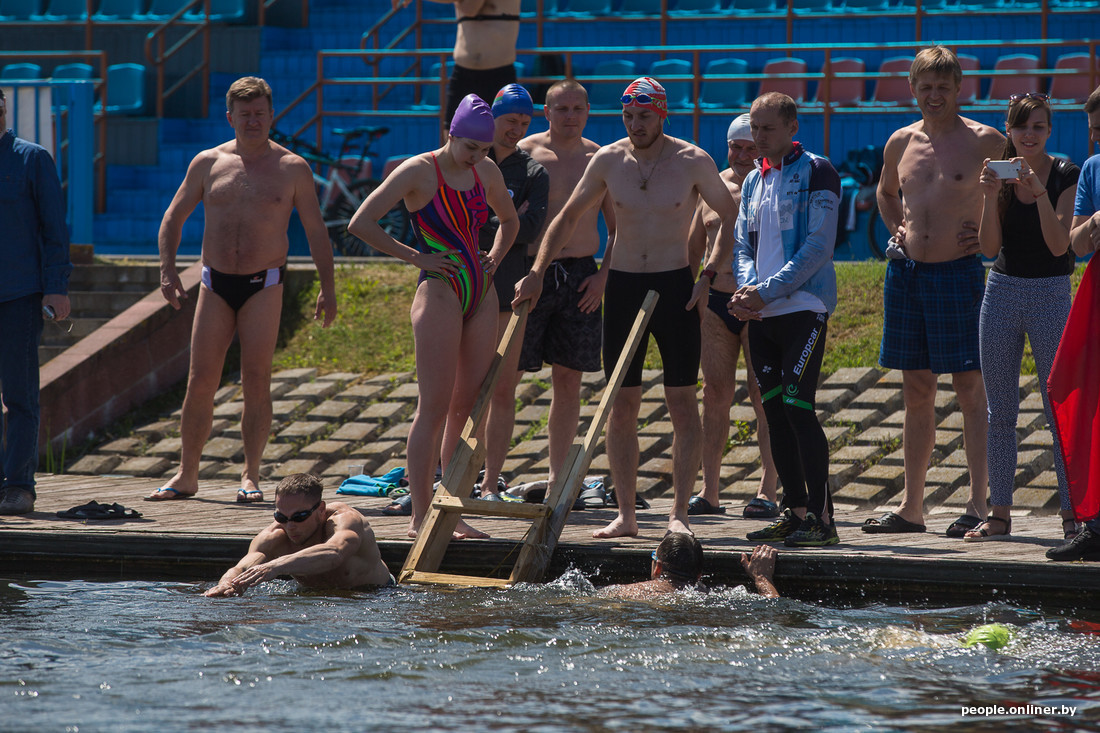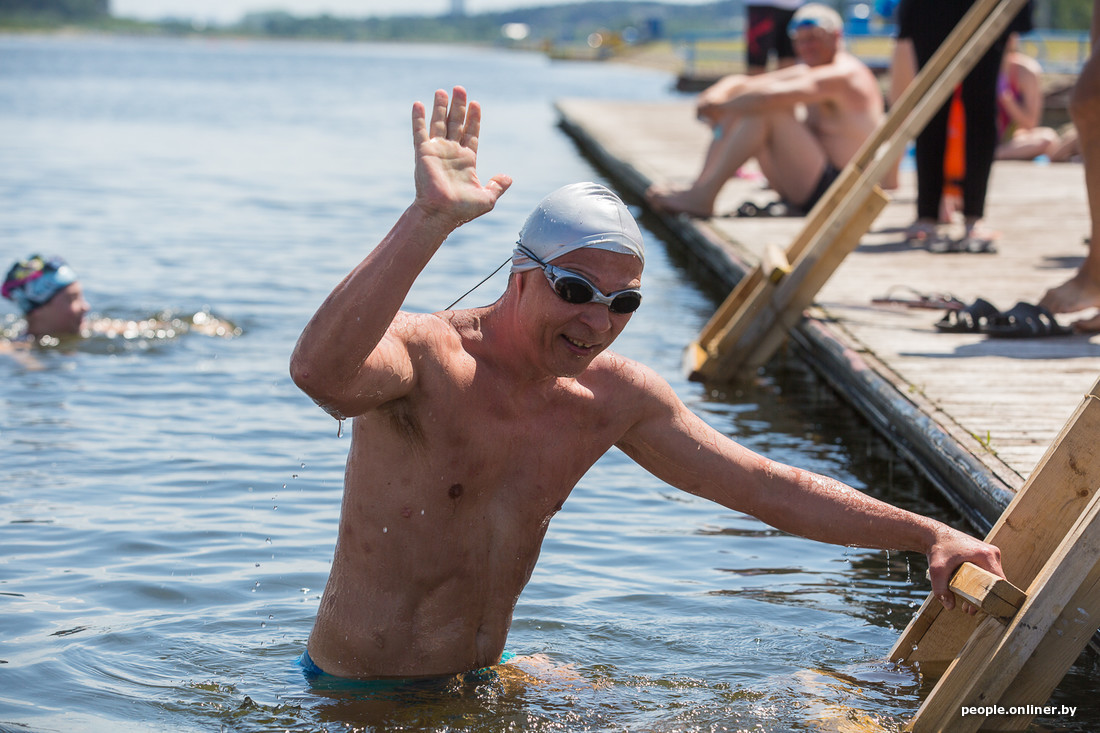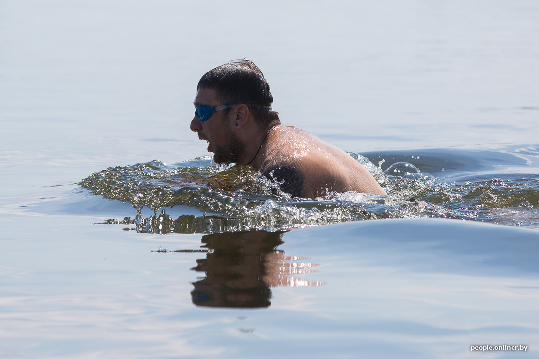 Да, это те ребята, которые облачаются в плавательные трусы и выходят на Комсомольское озеро в студеную зимнюю пору, чтобы окунуться в Свислочи. Правда, на дворе лето. И вроде как показывать свои холодовые способности негде. Оказывается, это не так. Сегодня под Минском состоялись марафонские заплывы в открытой воде. Победитель закрыл 4 км за час.